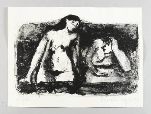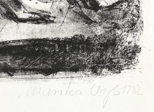 1982. Lithografie / Pinsellithografie, in Schwarz, auf glattem weißem Karton. – Originale Künstlergrafik, von Marika Voß. – Auflage Exemplar Nr. 1/200. – 21,0 x 32,0 cm (Darstellung / Druckbild), 26 x 35 cm (Blatt).