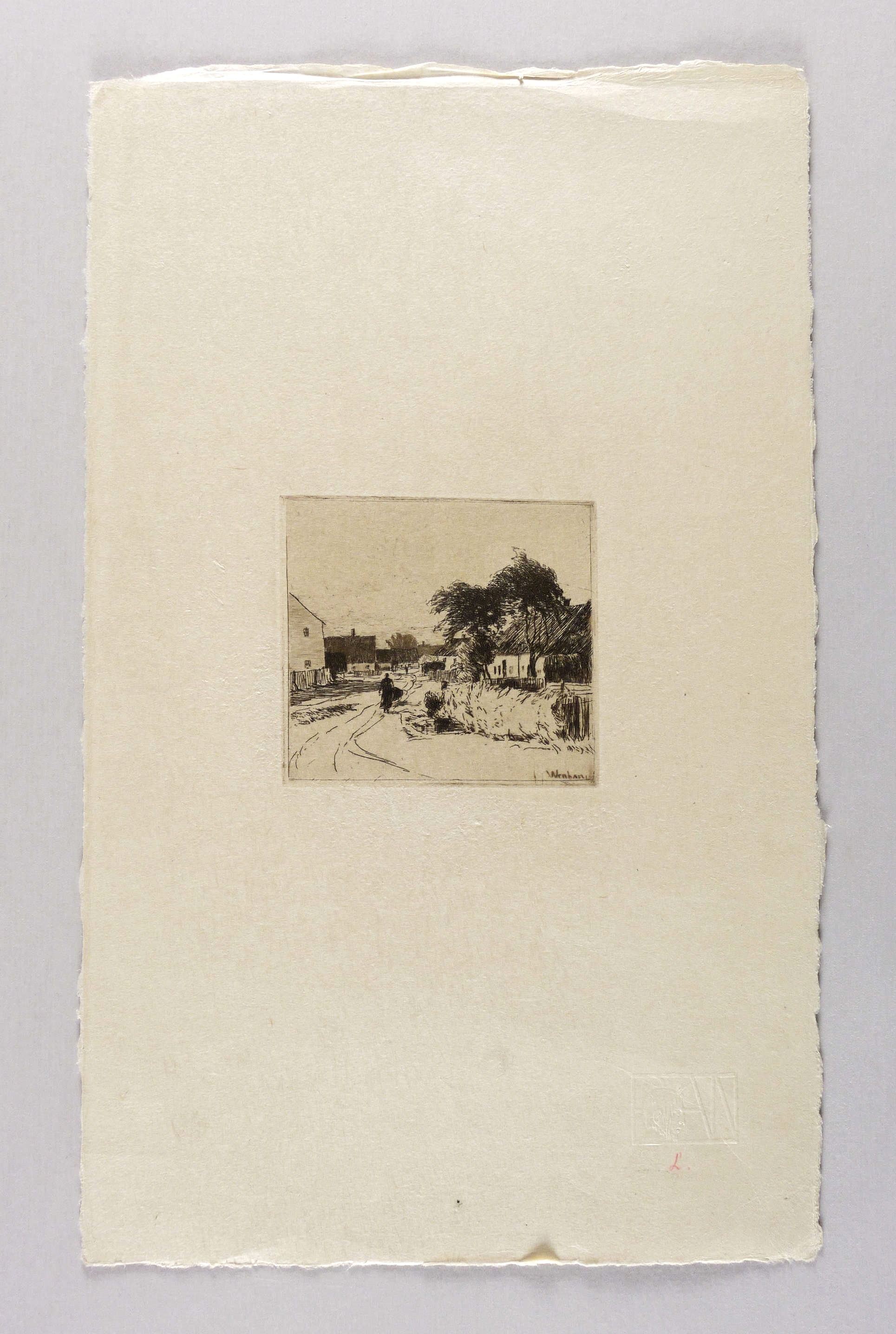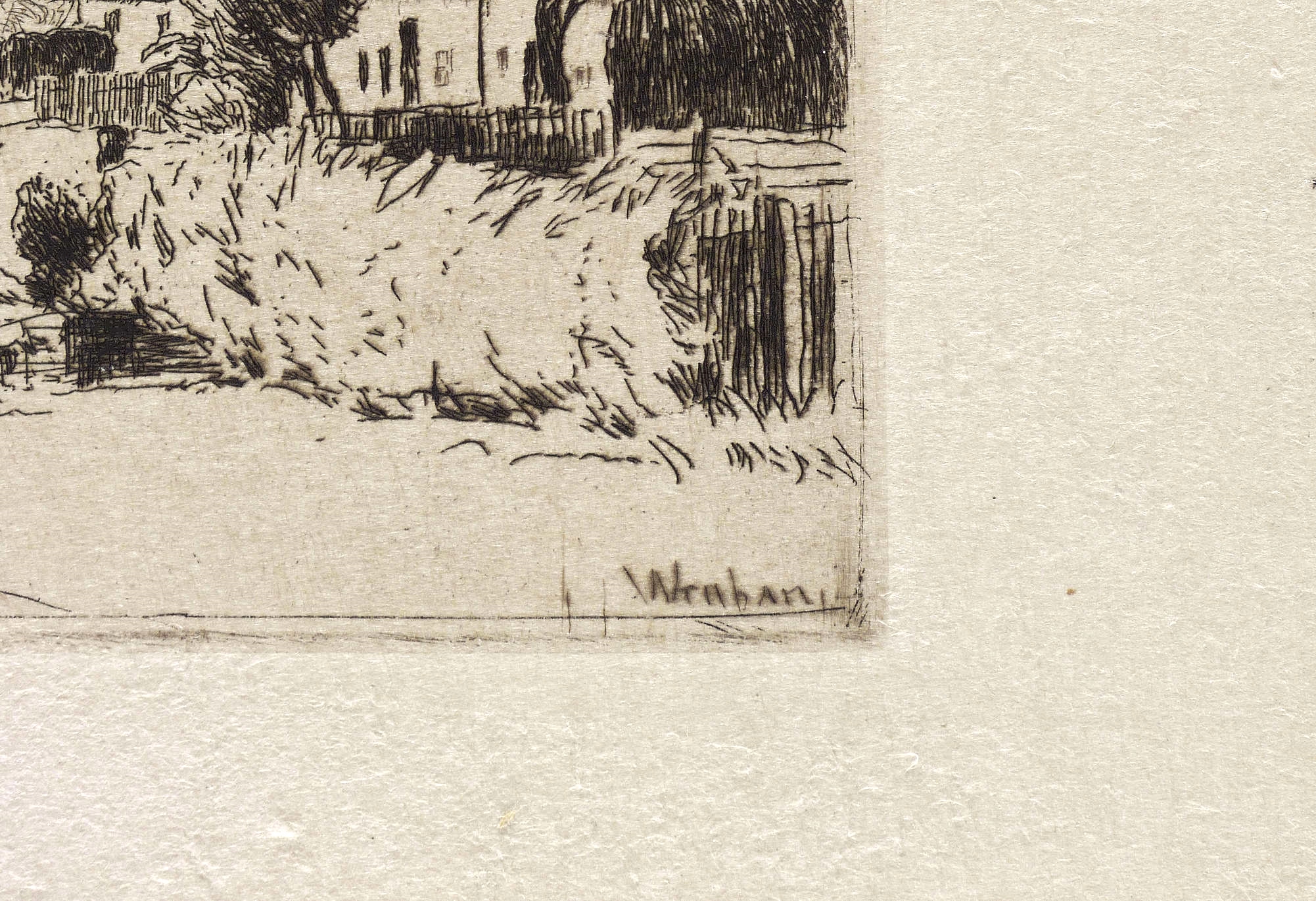 1895-1900. Radierung / Strichätzung & Kaltnadel, in Schwarz, auf gelbem Japanbütten. – Originale Künstlergrafik, von Sion Longley Wenban. – 9,2 x 10,0 cm (Darstellung / Einfassungslinie), 9,6 x 10,5 cm (Platte), 40 x 25 cm (Blatt).