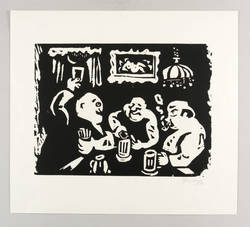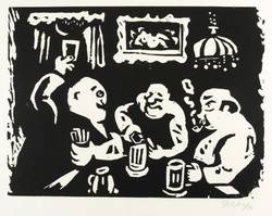 Herbert Sandberg (1908 Posen - 1991 Berlin). Deutscher Grafiker, Redakteur und Karikaturist. 1925/26 Studium an der Kunstgewerbeschule Breslau und der Staatliche Akademie für Kunst und Kunstgewerbe bei Otto Mueller. 1928-33 Illustrationen für verschiedene Berliner Zeitungen (u.a. Berliner Tageblatt). 1929 Mitglied Assoziation revolutionärer bildender Künstler (ARBKD). Als Jude und Kommunist 1934 inhaftiert. 1938-45 im Konzentrationslager Buchenwald. 1945-50 Mitherausgeber der Satirezeitschrift "Ulenspiegel". 1947-61 gemeinsam mit seiner Frau Eugenie zahlreiche Bühnenbilder für Berliner Theater unter dem Namen "Sandbergkollektiv". 1954-57 Chefredakteur der Zeitschrift "Bildende Kunst". Danach freischaffend in Berlin. 1970-72 Gastdozent an der Hochschule für Grafik und Buchkunst Leipzig (HGB), 1972 Professor. Mitglied der Akademie der Künste der DDR.