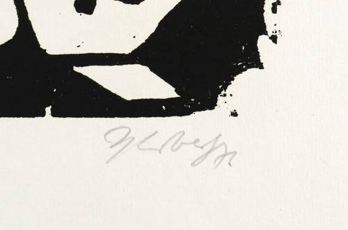 1976. Holzschnitt, in Schwarz, auf hartem hellchamois Maschinenbütten. – Originale Künstlergrafik, von Herbert Sandberg. – Künstlerexemplar (e.a.). – 26,7 x 35,9 cm (Darstellung / Druckstock), 42 x 46 cm (Blatt).