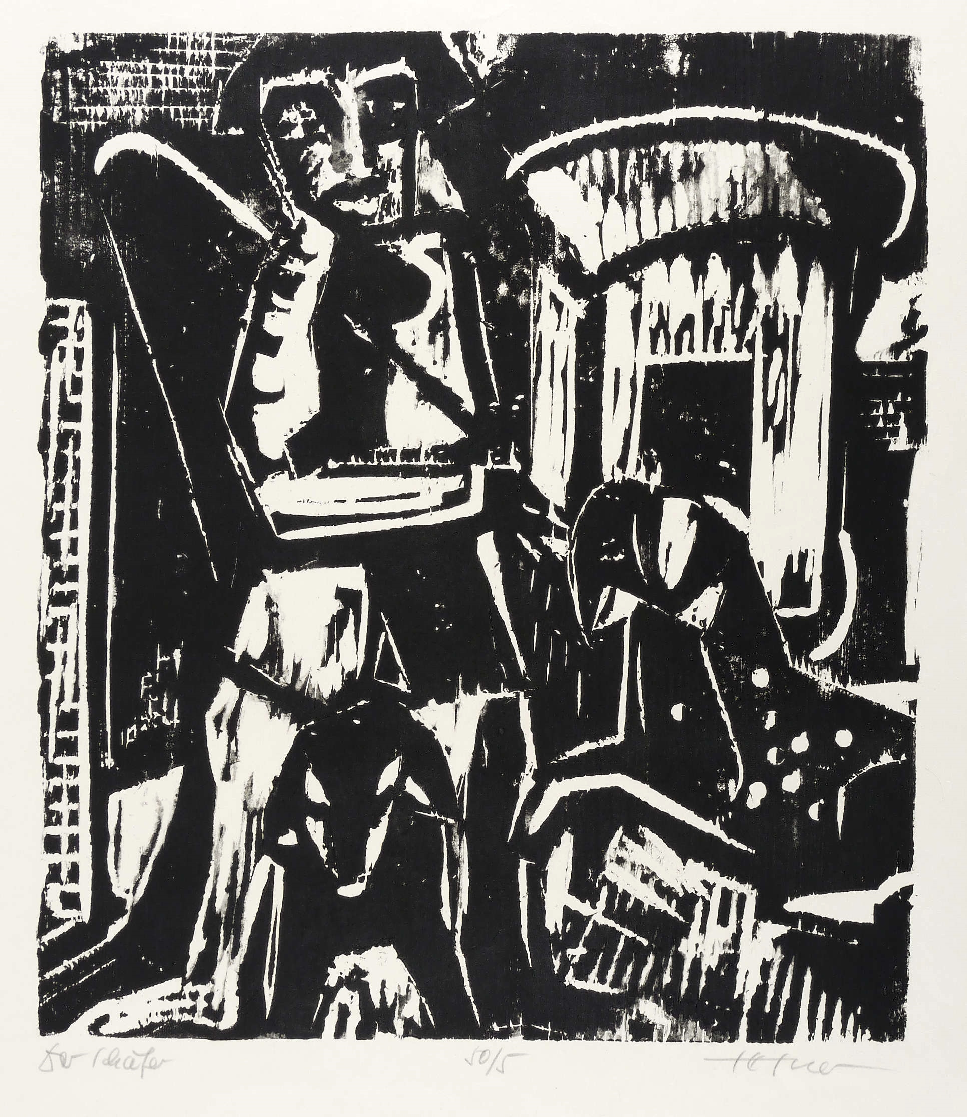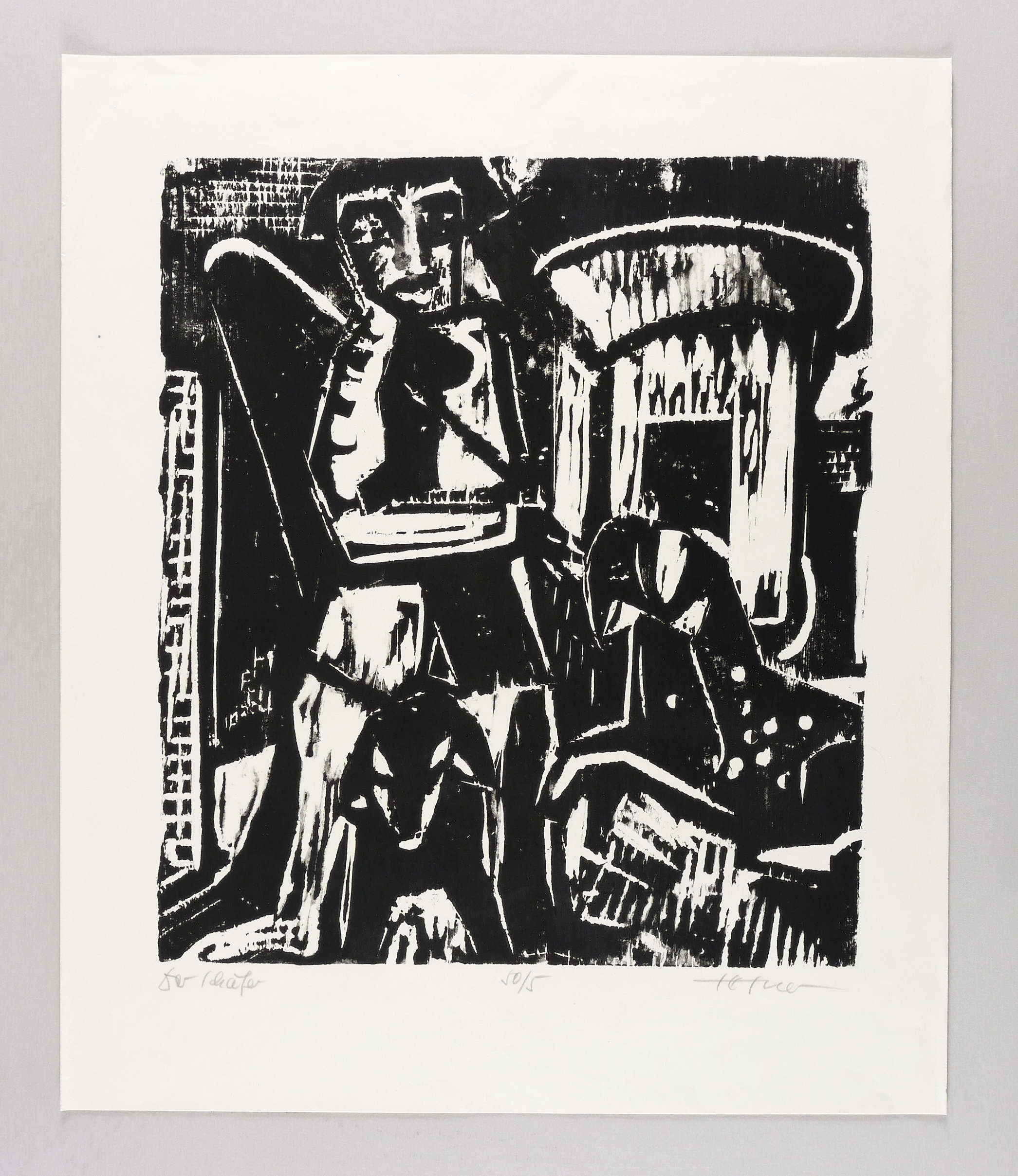 1970-1980. Holzschnitt, in Schwarz, auf glattem hellgelbem Velin. – Originale Künstlergrafik, von Heinz Tetzner. – Auflage Exemplar Nr. 5/50. – 38,0 x 33,2 cm (Darstellung / Druckstock), 50 x 42 cm (Blatt).
