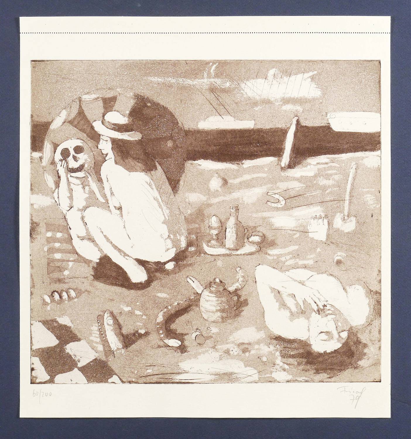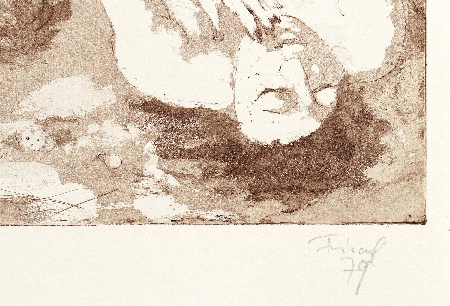 1979. Radierung / Aquatinta, in Braun, auf hellem Weißenborn-Bütten. – Originale Künstlergrafik, von Lutz Friedel. – Auflage Exemplar Nr. 60/200. – 30,9 x 33,2 cm (Darstellung / Platte), 39 x 35 cm (Blatt).