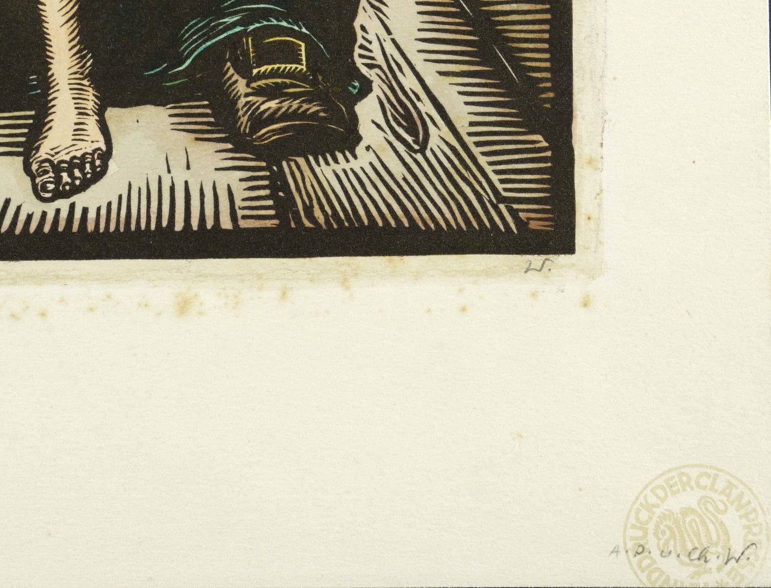 Rechts unter dem Druckstock in Bleistift signiert: ″W.″ Links Titel. In der rechten unteren Blattecke Stempel ″HANDDRUCK DER CLAN-PRESSE″. Dazu in Bleistift zusätzlich Signatur des Sohnes Christian Weber. – Selten. – Papier geringfügig stockfleckig. Mäßig gut erhalten.