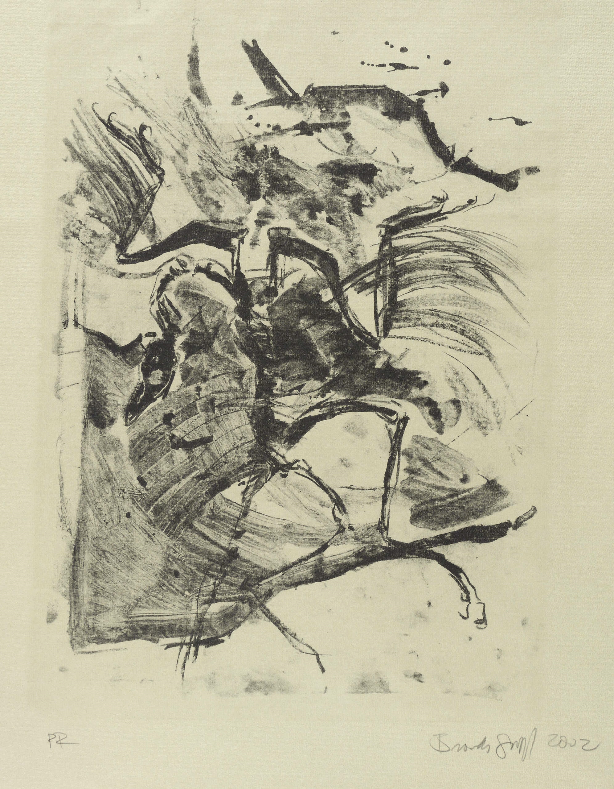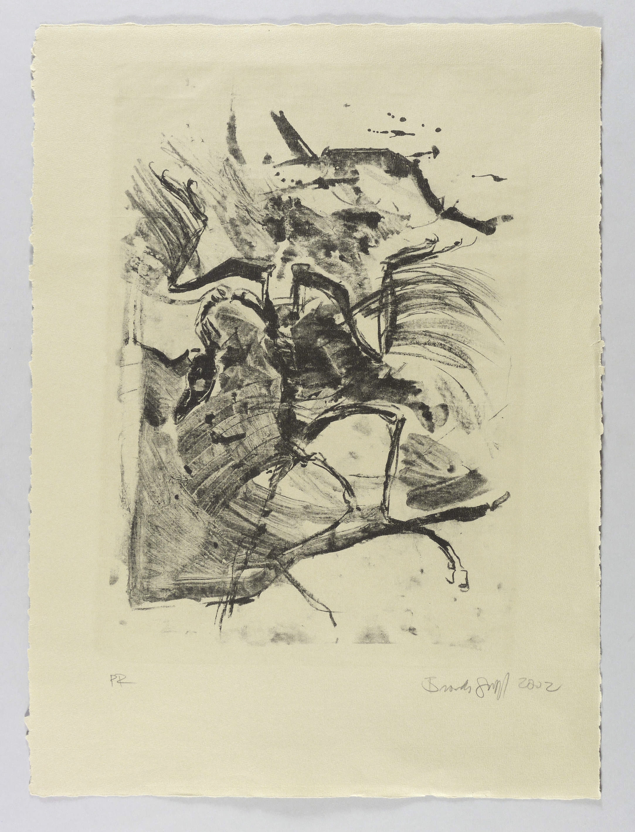 2002. Lithografie / Kreidelithografie, in Schwarz, auf hellgrauem Hahnemühle-Bütten. – Originale Künstlergrafik, von Janet Brooks-Gerloff. – Probedruck. – 39,8 x 28,0 cm (Darstellung / Druckbild), 54 x 40 cm (Blatt).