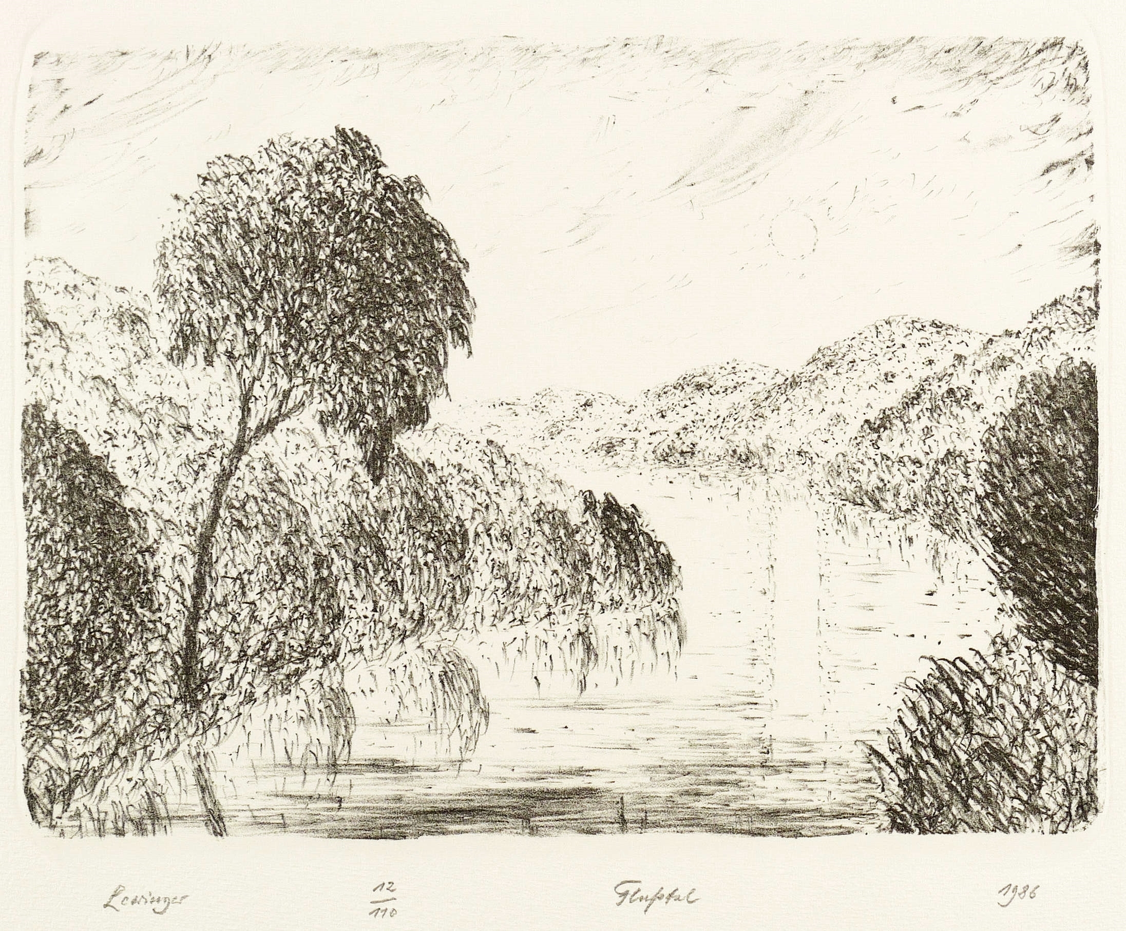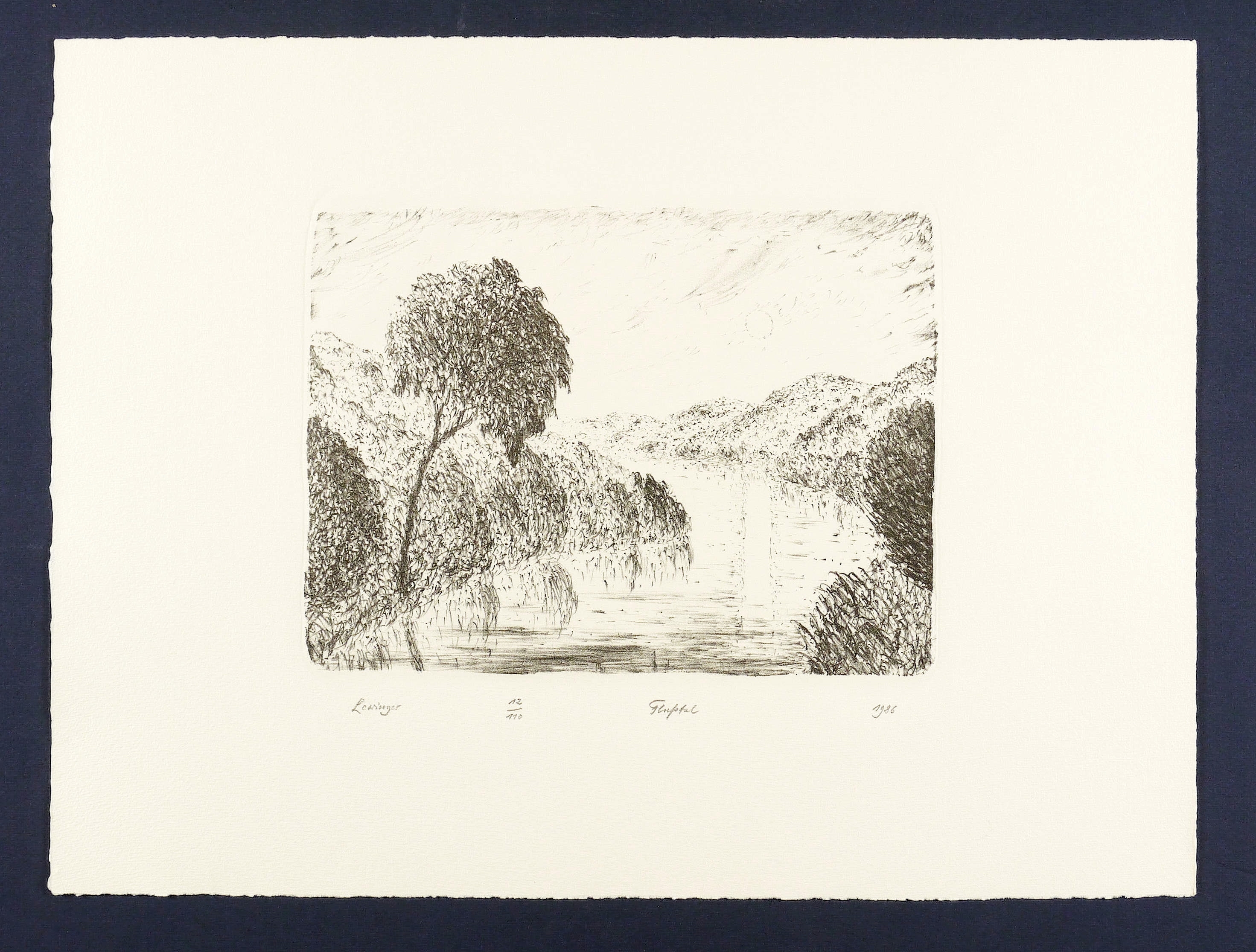 1986. Lithografie / Kreidelithografie, auf Hahnemühle-Bütten. – Originale Künstlergrafik, von Ernst Lewinger. – 19,6 x 26,6 cm (Darstellung / Druckbild), 36 x 48 cm (Blatt).
