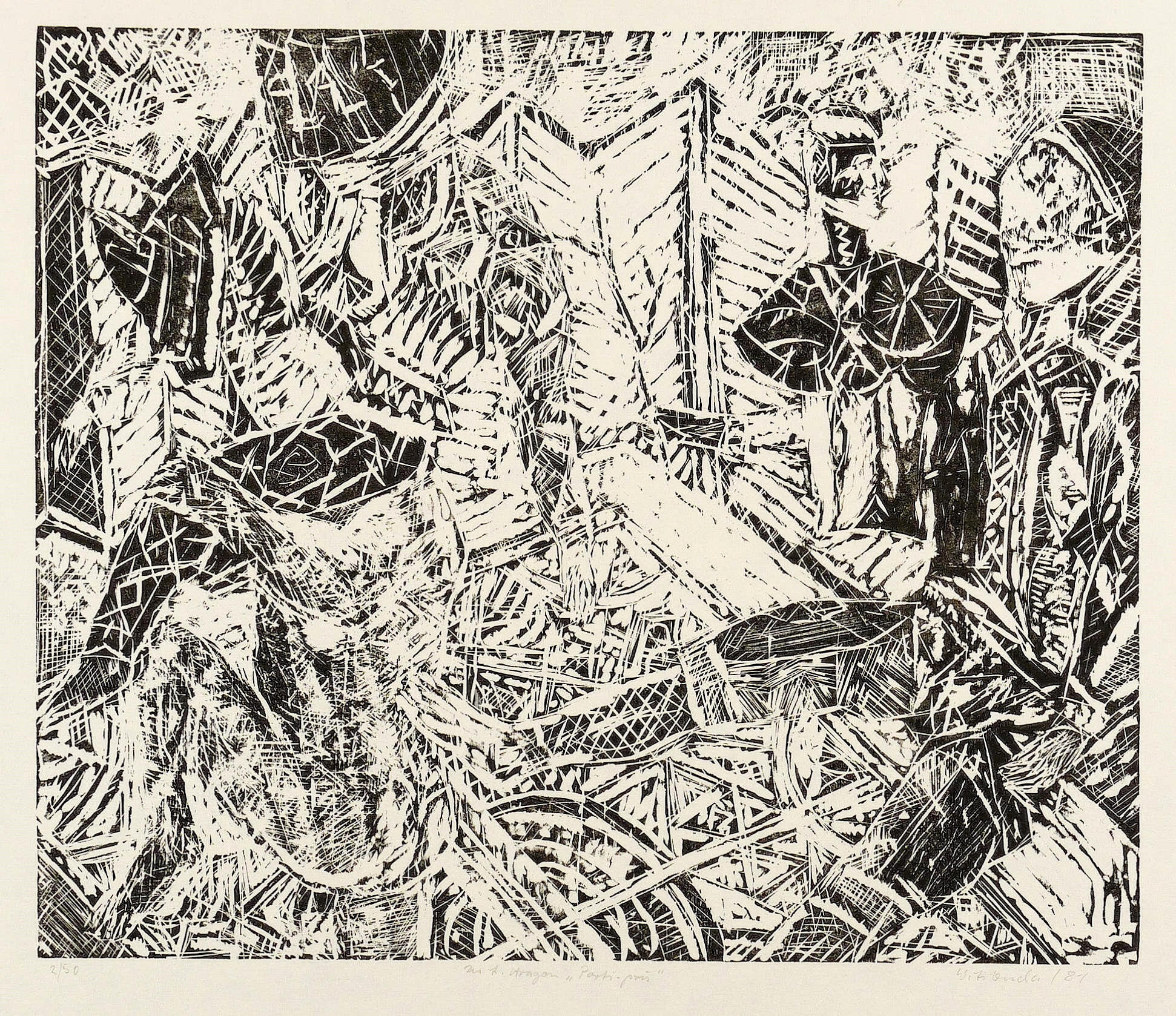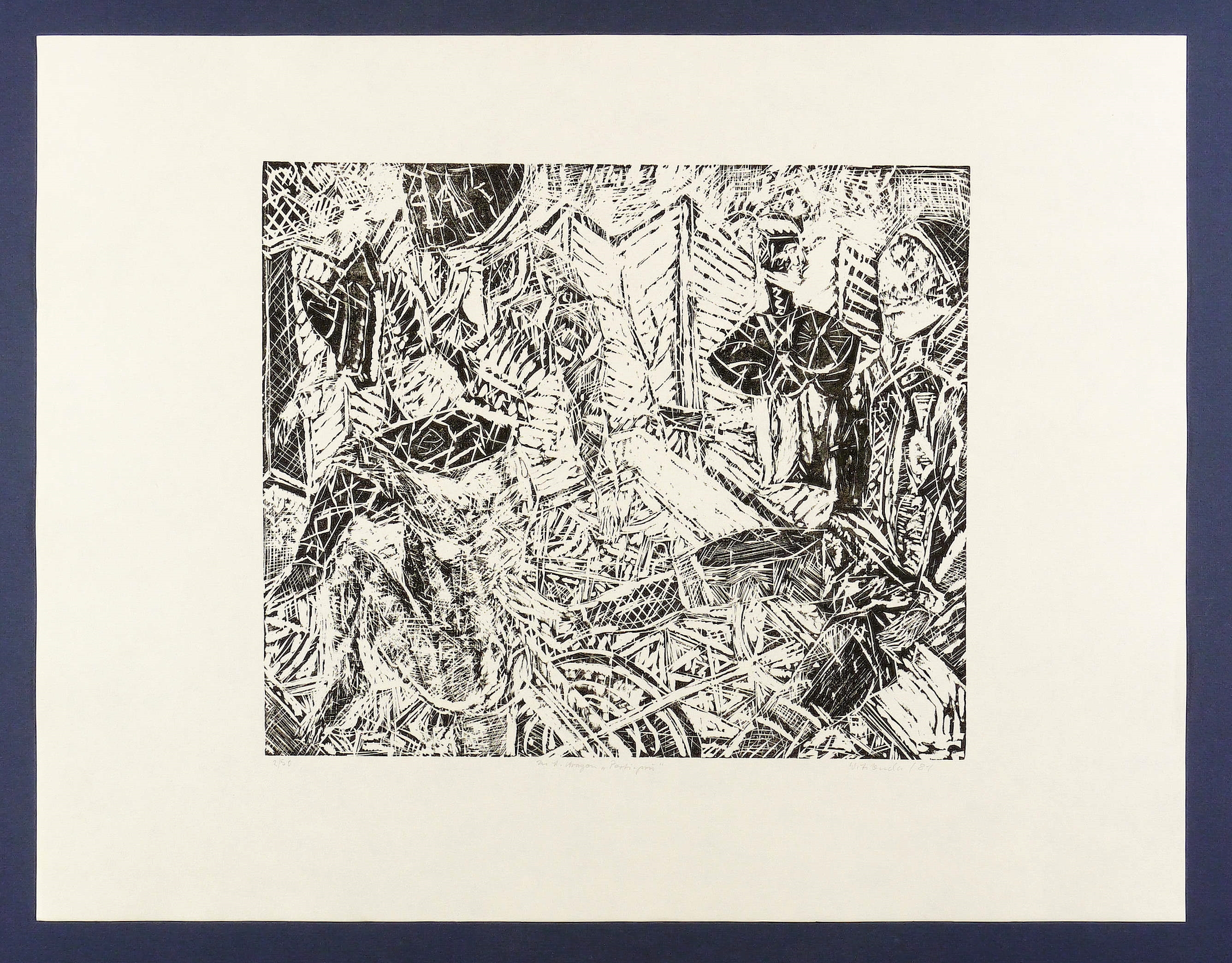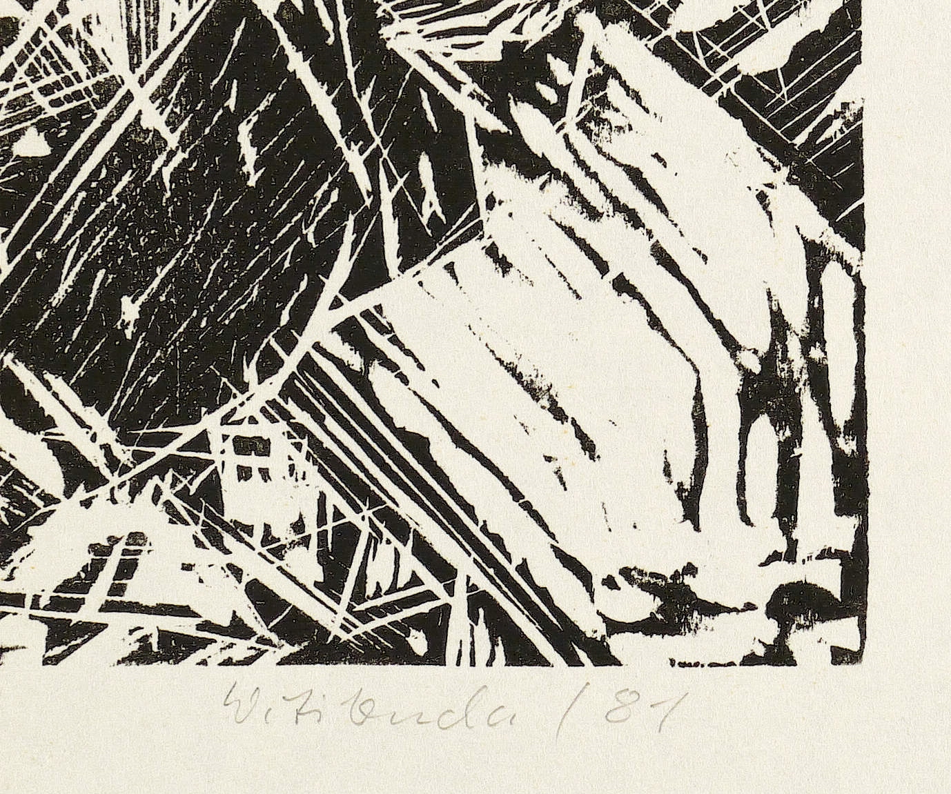 1981. Holzschnitt, in Schwarz, auf leichtem hellgelbem Papier. – Von Walter Libuda. – Exemplar Auflage Nr. 2/50. – 33,3 x 39,4 cm (Darstellung / Druckstock), 50 x 65 cm (Blatt).