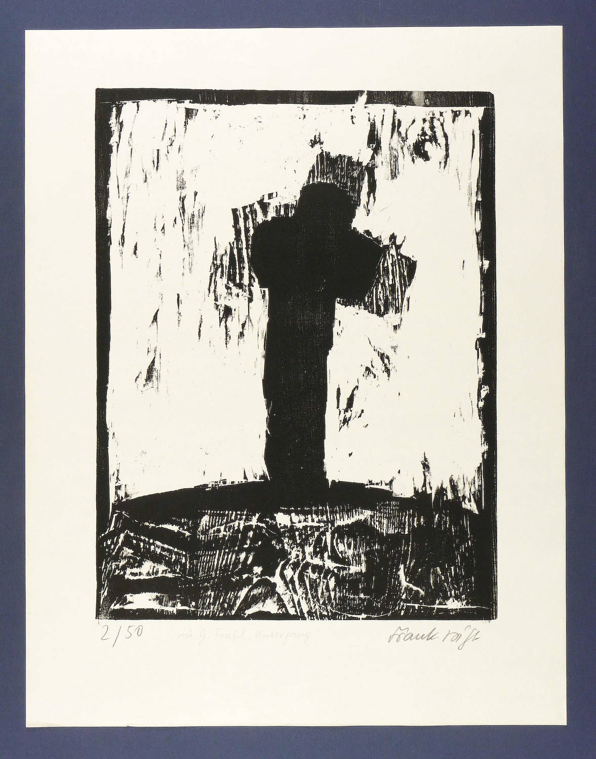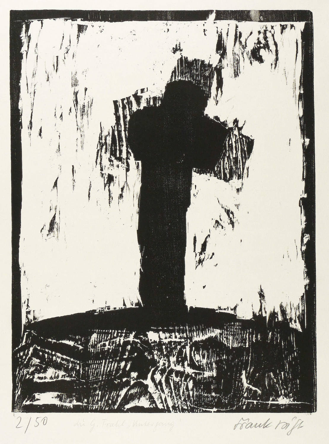 1981. Holzschnitt, in Schwarz, auf weißlichem Achat-Bütten. – Originale Künstlergrafik, von Frank Voigt. – Auflage Exemplar Nr. 2/50. – 48,7 x 36,9 cm (Darstellung / Druckstock), 65 x 50 cm (Blatt).