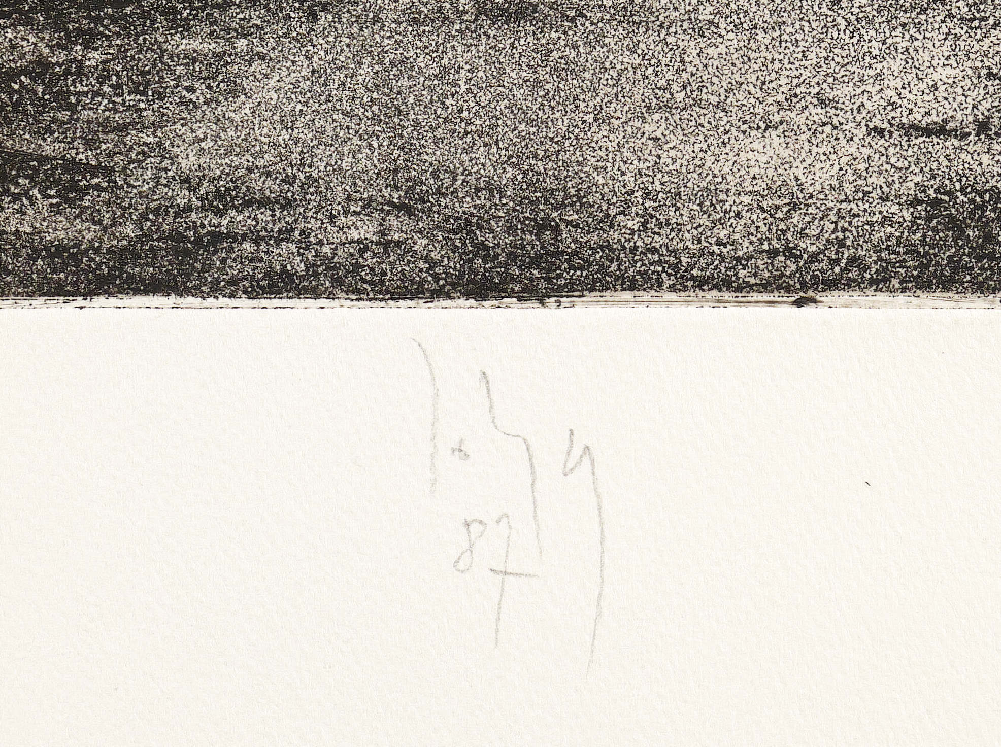 In Bleistift unten rechts signiert und datiert. – Freier Abzug der eigentlich für das Titelblatt der gleichnamigen Mappe konzipierten Platte außerhalb der Auflage. Selten. – Ohne Mangel. Sehr schönes Exemplar.