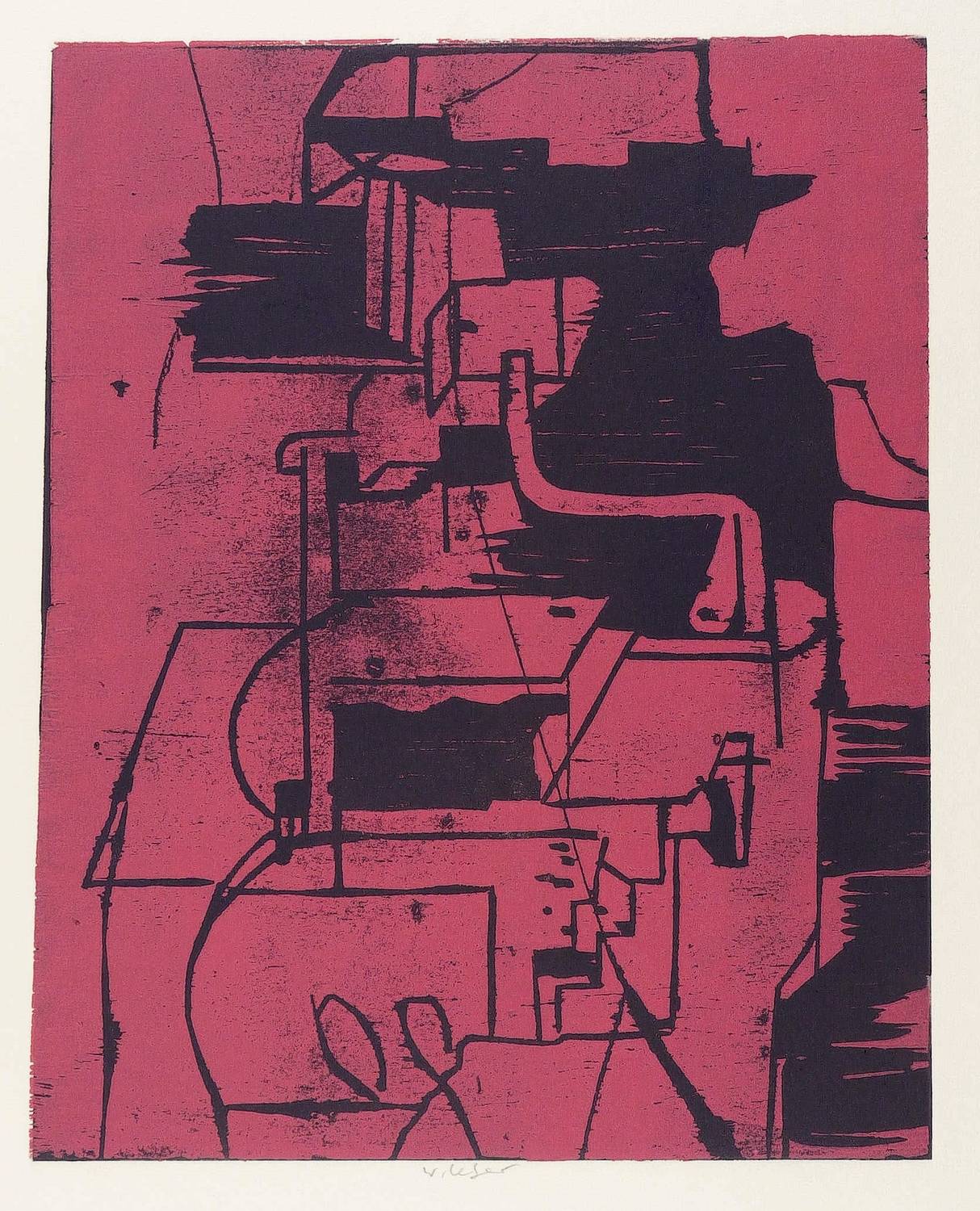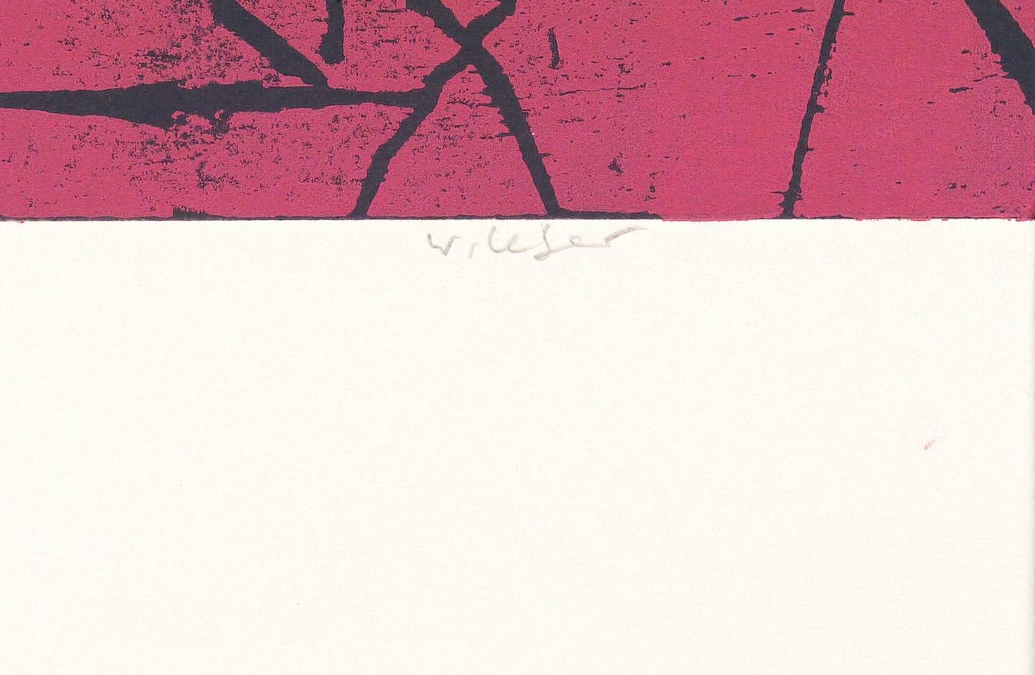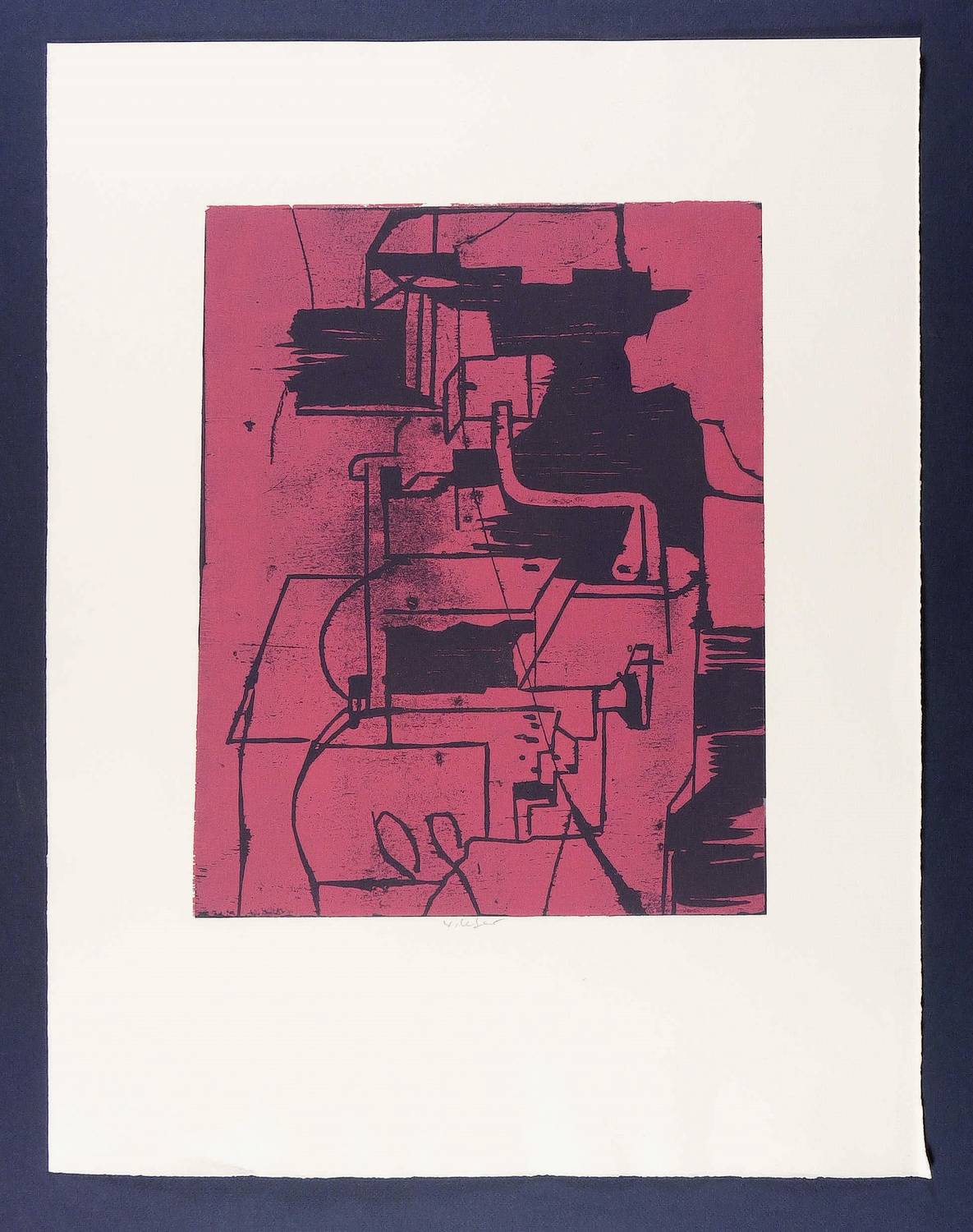 1994. Farbradierung / Aquatinta, in Dunkelgrau & Hellrot, auf hellgelbem Büttenkarton. – Originale Künstlergrafik, von Wolfgang Leber. – 42,8 x 34,1 cm (Darstellung / Platte), 68 x 52,5 cm (Blatt).