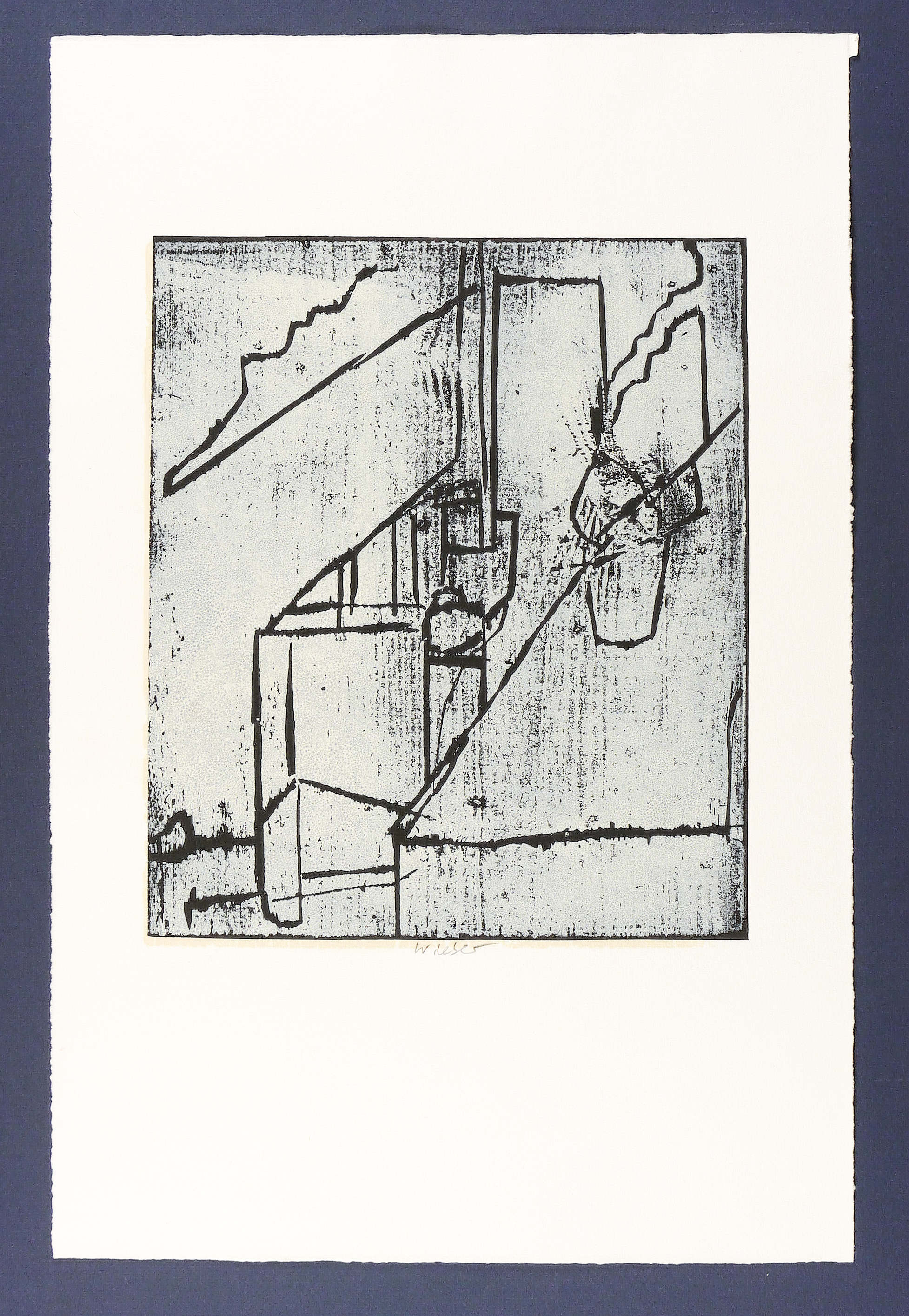 Wolfgang Leber (*1936 Berlin - lebt ebd.). Maler, Grafiker und Bildhauer. 1957-61 Studium an der Werkkunstschule Berlin-Charlottenburg. 1961 Studium an der HfBK Berlin-Charlottenburg, Abbruch des Studiums durch den Bau der Berliner Mauer. 1962-64 Arbeit als Grafiker an der Volksbühne Berlin. 1970-95 Gründung und Leiter des Werkstudio Grafik im Prenzlauer Berg. 1974-78 Lehrtätigkeit an der Fachschule für Werbung und Gestaltung in Berlin-Schöneweide. 1981 Berlin-Preis. 1990-93 Dozent an der Kunsthochschule Berlin-Weißensee. 1998-99 Gastprofessur an der Kunsthochschule Berlin-Weißensee.