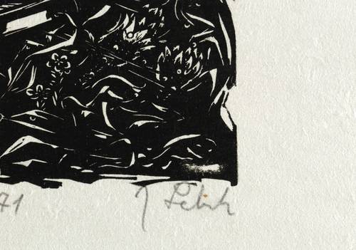 1971. Holzschnitt, in Schwarz, auf rauem weißlichem Japanbütten. – Originale Künstlergrafik, von Johannes Lebek. – 24,3 x 17,2 cm (Darstellung / Druckstock), 40 x 31 cm (Blatt).