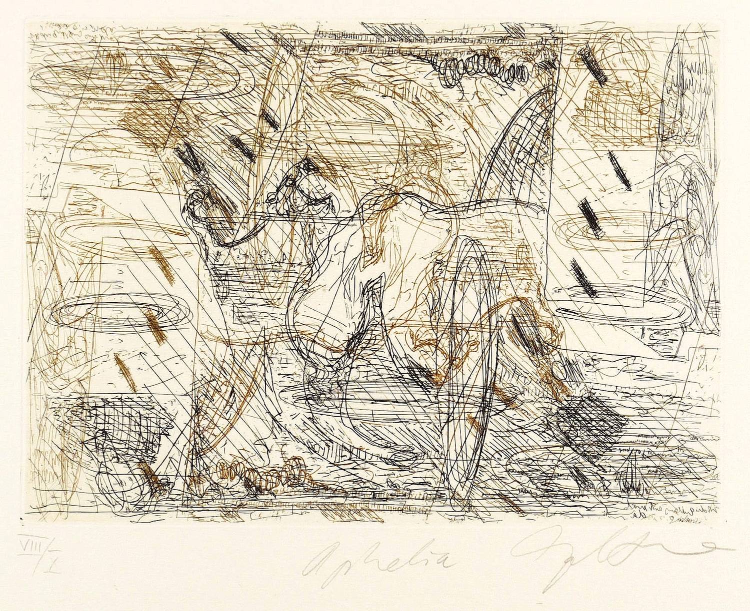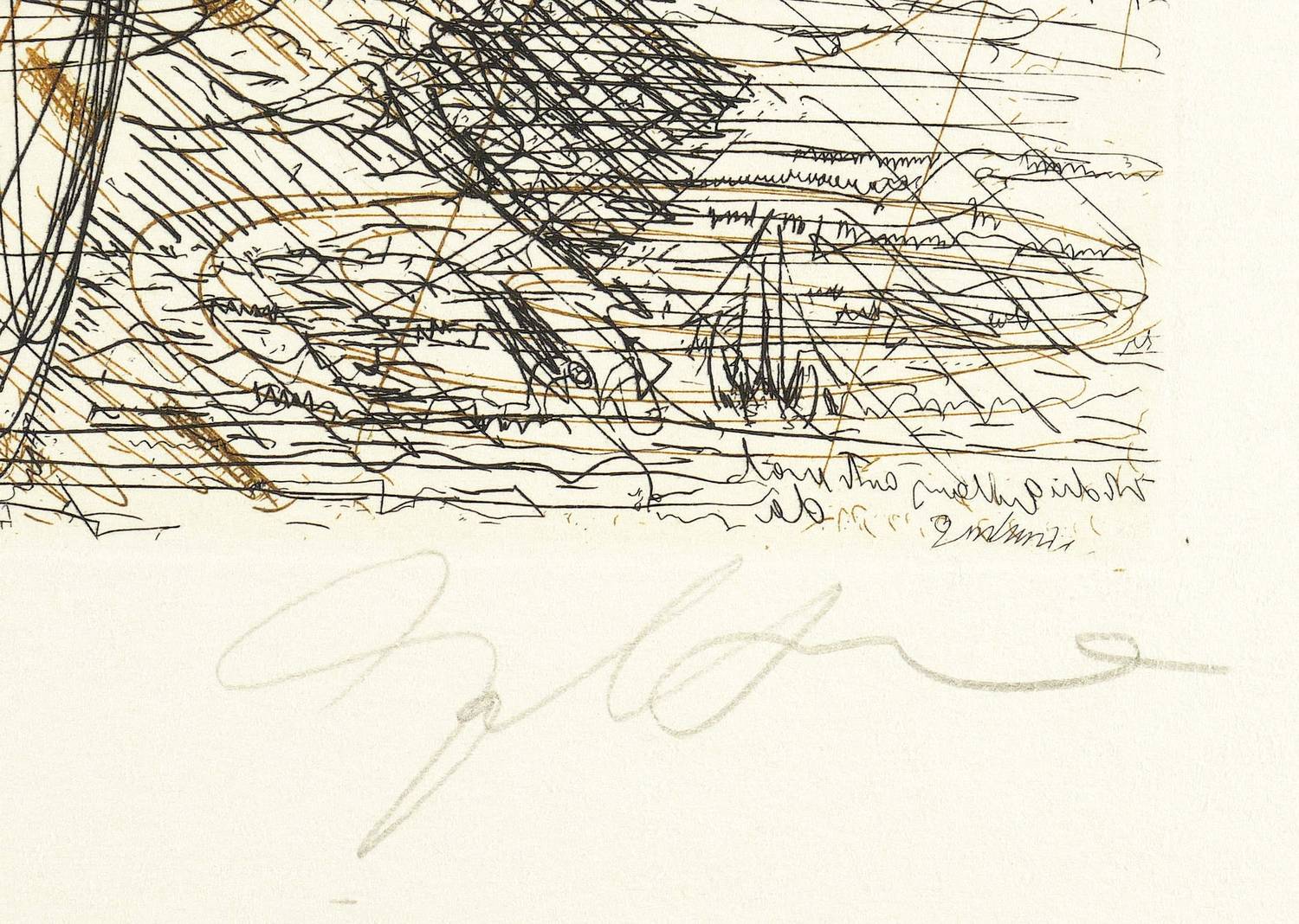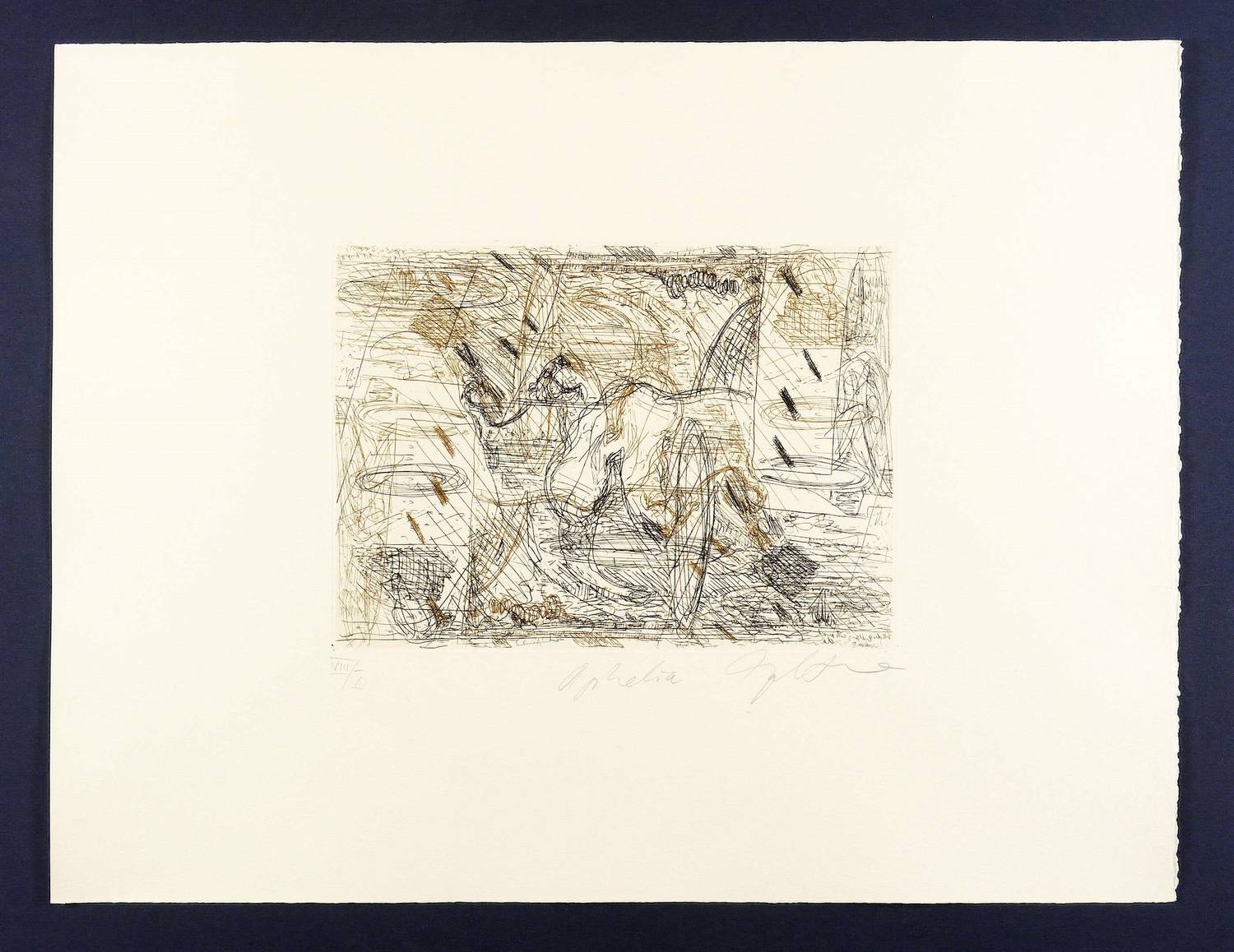 1996. Farbradierung / Strichätzung, in Braun & Schwarz, auf hellchamois Büttenkarton. – Originale Künstlergrafik, von Dieter Goltzsche. – Auflage Exemplar Nr. VIII/X. – 23,7 x 32,6 cm (Darstellung / Platte), 50 x 65 cm (Blatt).