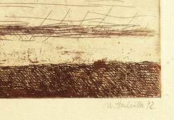 1972. Radierung / Strichätzung, mit Plattenton, in Dunkelbraun, auf gelbem Maschinenbütten. – Originale Künstlergrafik, von Ulrich Hachulla. – 24,6 x 32,4 cm (Darstellung / Platte), 37 x 48 cm (Blatt).