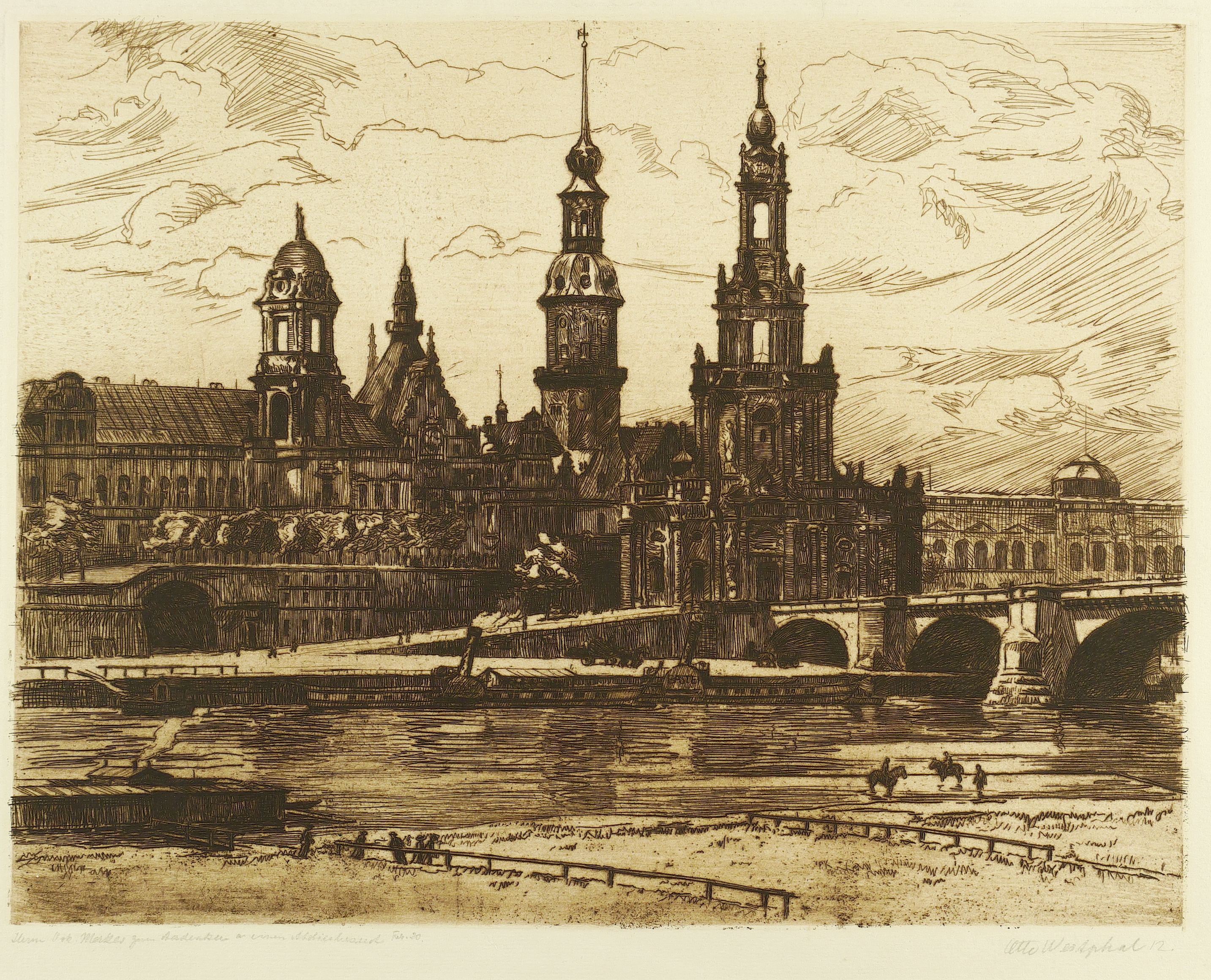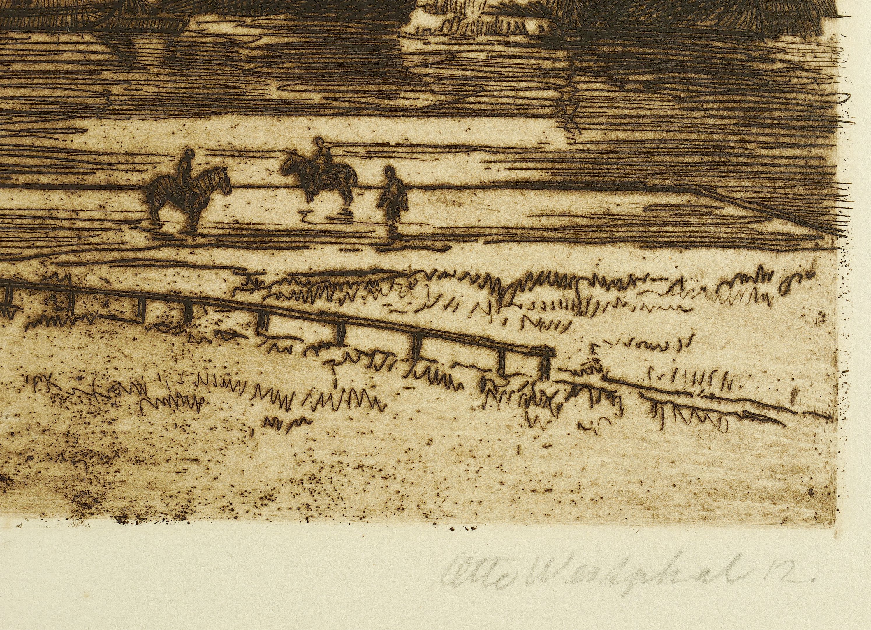 1912. Radierung / Strichätzung, mit Plattenton, in Braun, auf Van-Gelder-Zonen-Bütten. – Originale Künstlergrafik, von Otto Westphal. – 33,9 x 43,7 cm (Darstellung / Platte), 45 x 63 cm (Blatt).