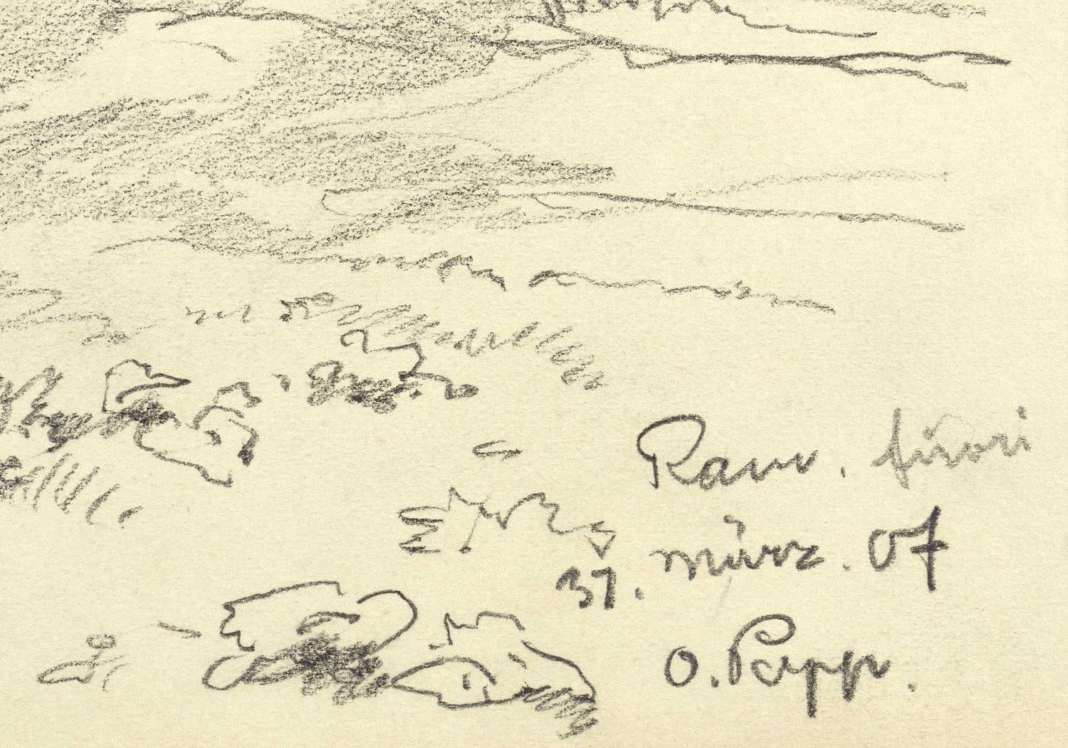 Rechts unten in Bleistift bezeichnet, datiert und signiert: ″Rom. fuori / 31. März 1907 / O. Popp.″ – Sehr guter Erhaltungszustand.