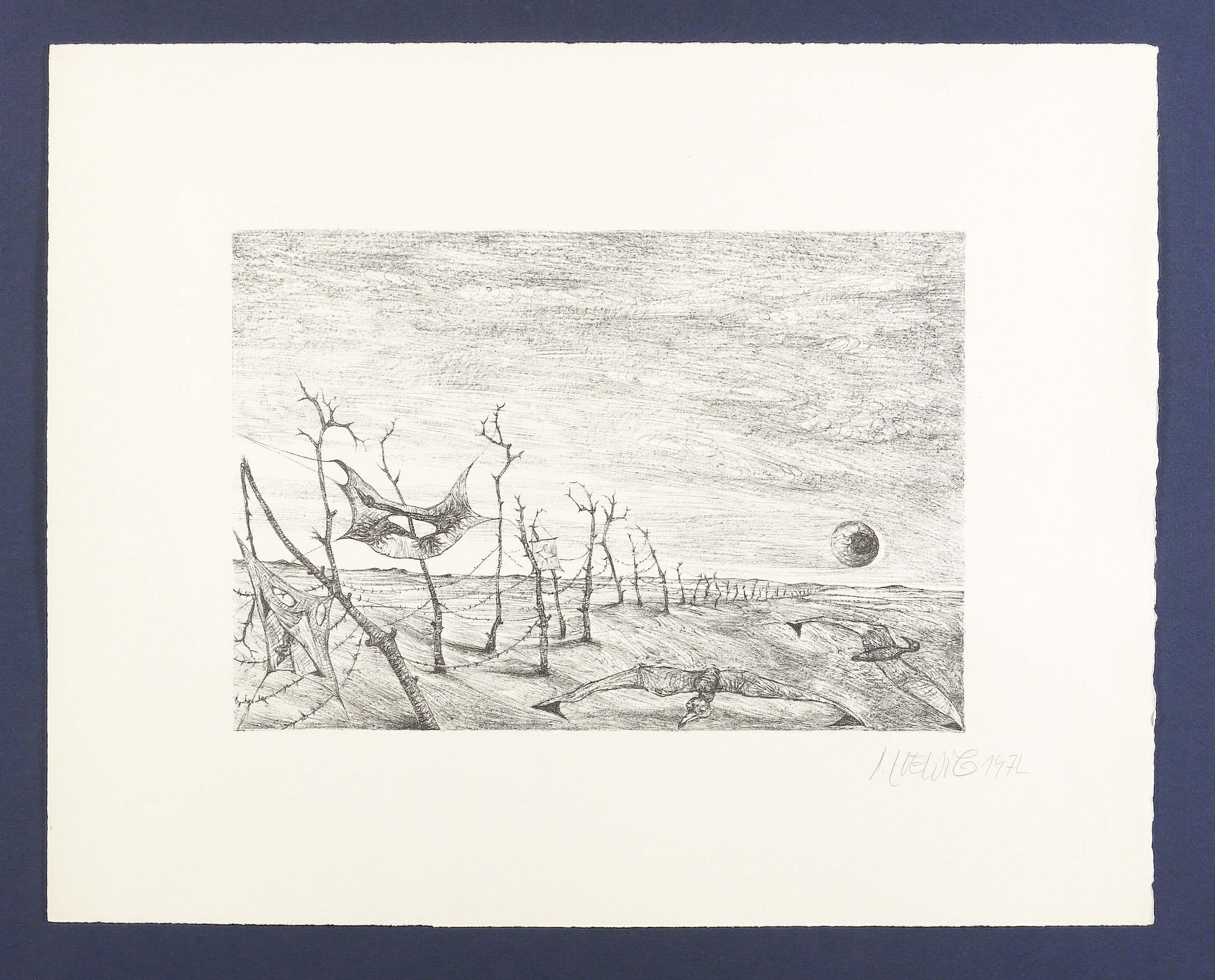 1972. Lithografie / Kreidelithografie, in Schwarz, auf BFK-Rives-Bütten. – Originale Künstlergrafik, von Roger Loewig. – 22,6 x 33,0 cm (Darstellung / Druckbild), 40 x 50 cm (Blatt).