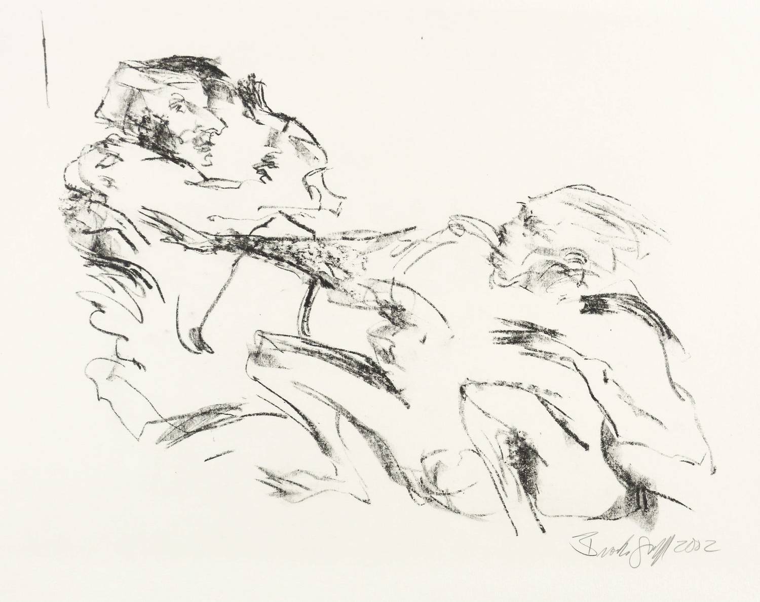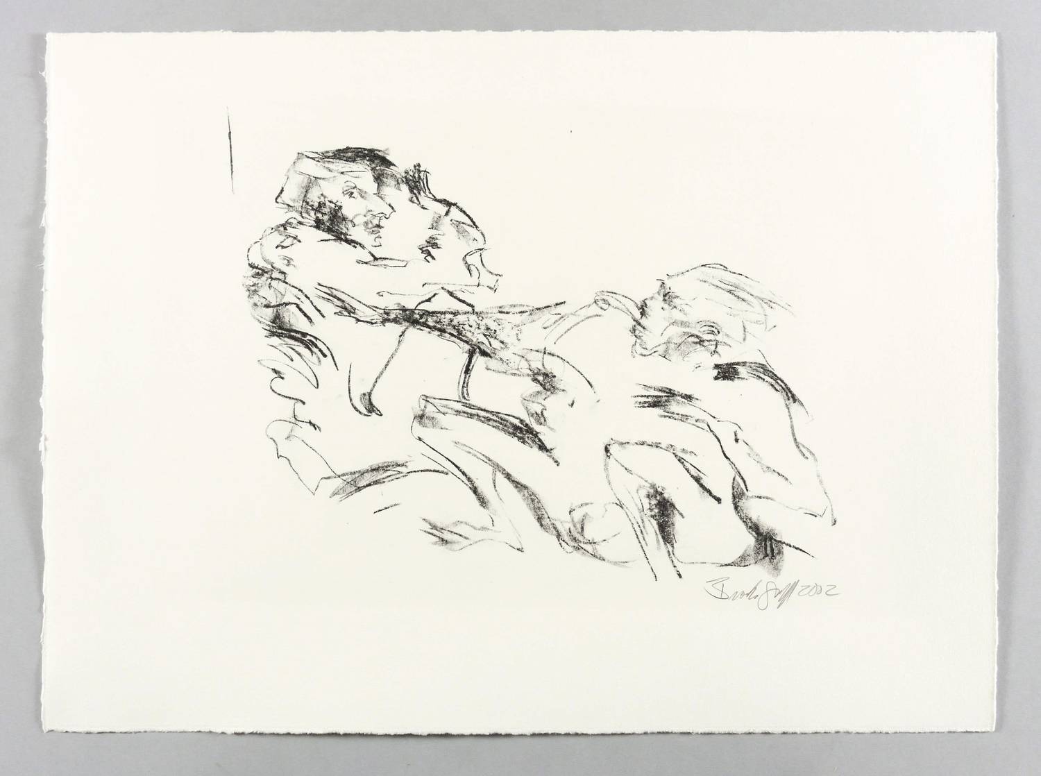 2002. Lithografie / Kreidelithografie, in Schwarz, auf glattem hellchamois Karton. – Originale Künstlergrafik, von Janet Brooks-Gerloff. – Probedruck. – 26,8 x 34,5 cm (Darstellung / Druckbild), 40 x 54 cm (Blatt).