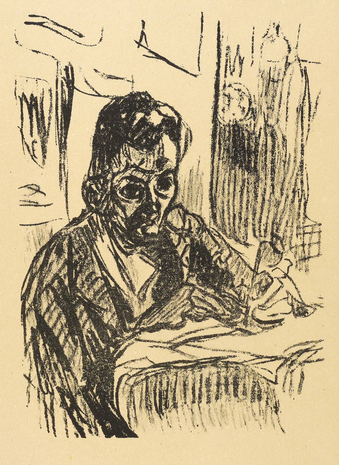 1919. Lithografie / Kreidelithografie, in Schwarz, auf gelblichem Karton. – Originale Künstlergrafik, von Kurt Badt. – 22,6 x 16,3 cm (Darstellung), 31 x 24 cm (Blatt).