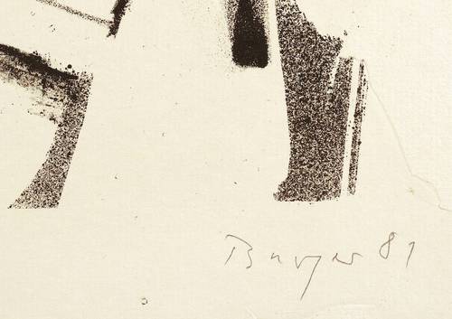 1981. Lithografie / Kreide- & Pinsellithografie, in Schwarz, auf hell-chamois Büttenpapier. – Originale Künstlergrafik, von Dietrich Burger. – 29,0 x 43,5 cm (Darstellung), 38 x 50 cm (Blatt).