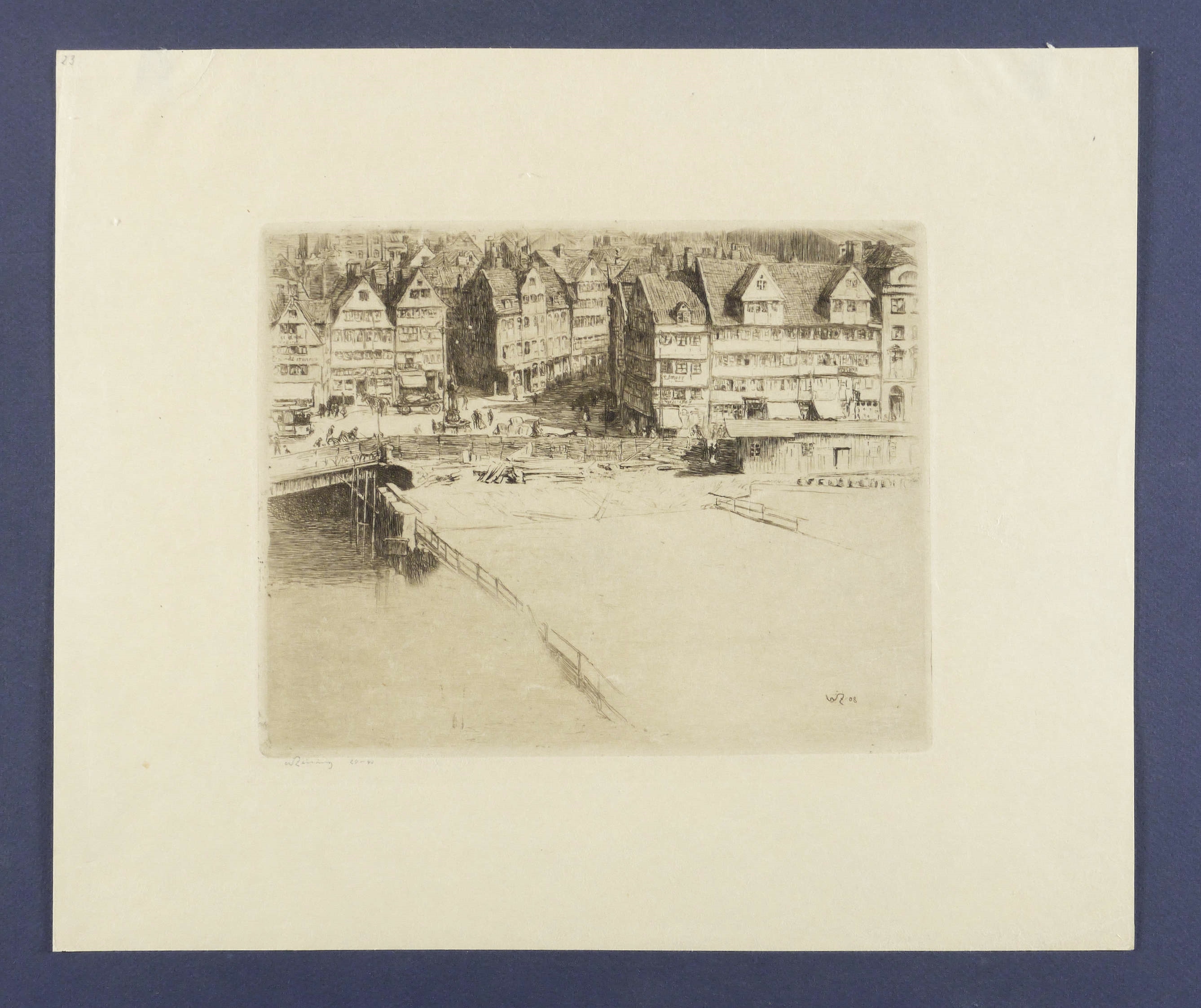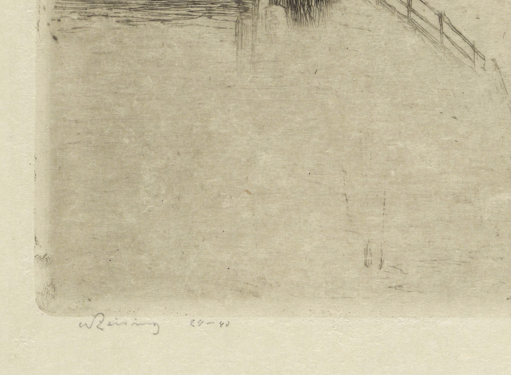 Richter 44. – Links unten in Bleistift signiert. Daneben eigenhändige Auflagenbezeichnung. In der Platte Monogramm und Jahr. – 1. Zustand. Früher Abzug aus der kleinen Auflage von der noch unbeschnittenen Platte! Seltenes Exemplar. – Leichte Lagerspuren. Verso Montagespuren. sehr schönes breitrandiges Exemplar. Sehr guter Zustand.