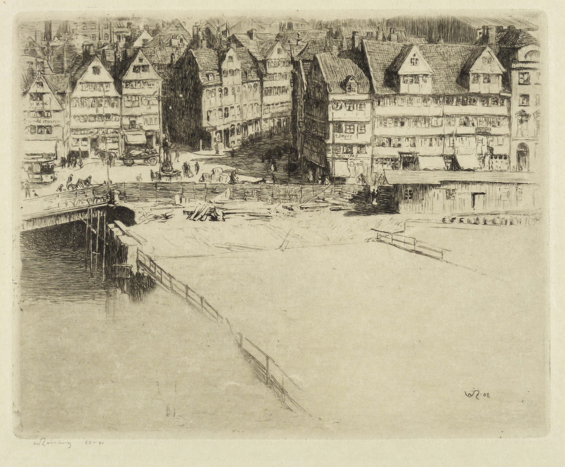 1908. Radierung / Kaltnadel, in Braun, mit Plattenton, auf gelblichem Japanpapier. – Originale Künstlergrafik, von Walter Zeising. – Auflage Exemplar Nr. 24/40. – 20,0 x 25,0 cm (Darstellung / Platte), 33,5 x 40 cm (Blatt).