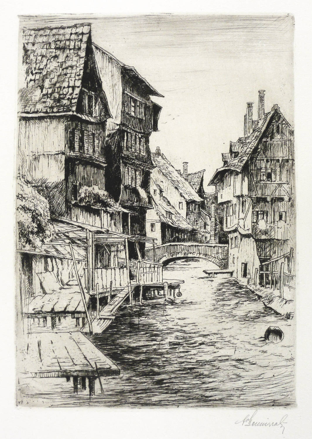 Um 1910. Radierung / Strichätzung, in Schwarz, mit Plattenton, auf hellchamois Kupferdruck. – Originale Künstlergrafik, von Fritz von Hellingrath. – 27,5 x 19,6 cm (Darstellung / Platte), 36 x 29 cm (Blatt).