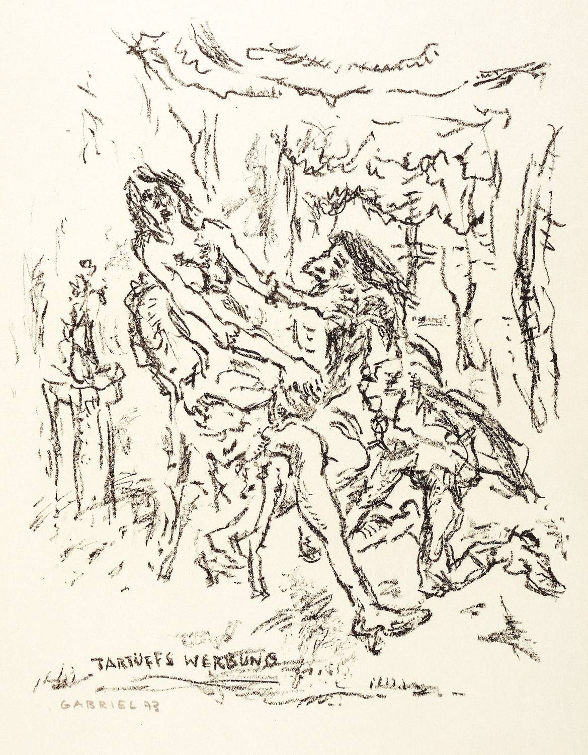 1973. Lithografie / Kreidelithografie, in Schwarz, auf weißem Karton. – Originale Künstlergrafik, von Manfred Gabriel. – 23,3 x 19,1 cm (Darstellung), 30 x 21 cm (Blatt).