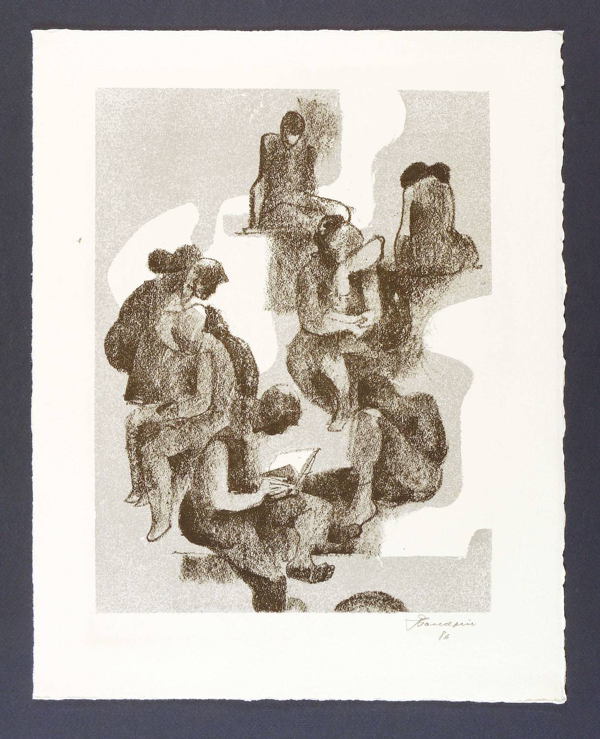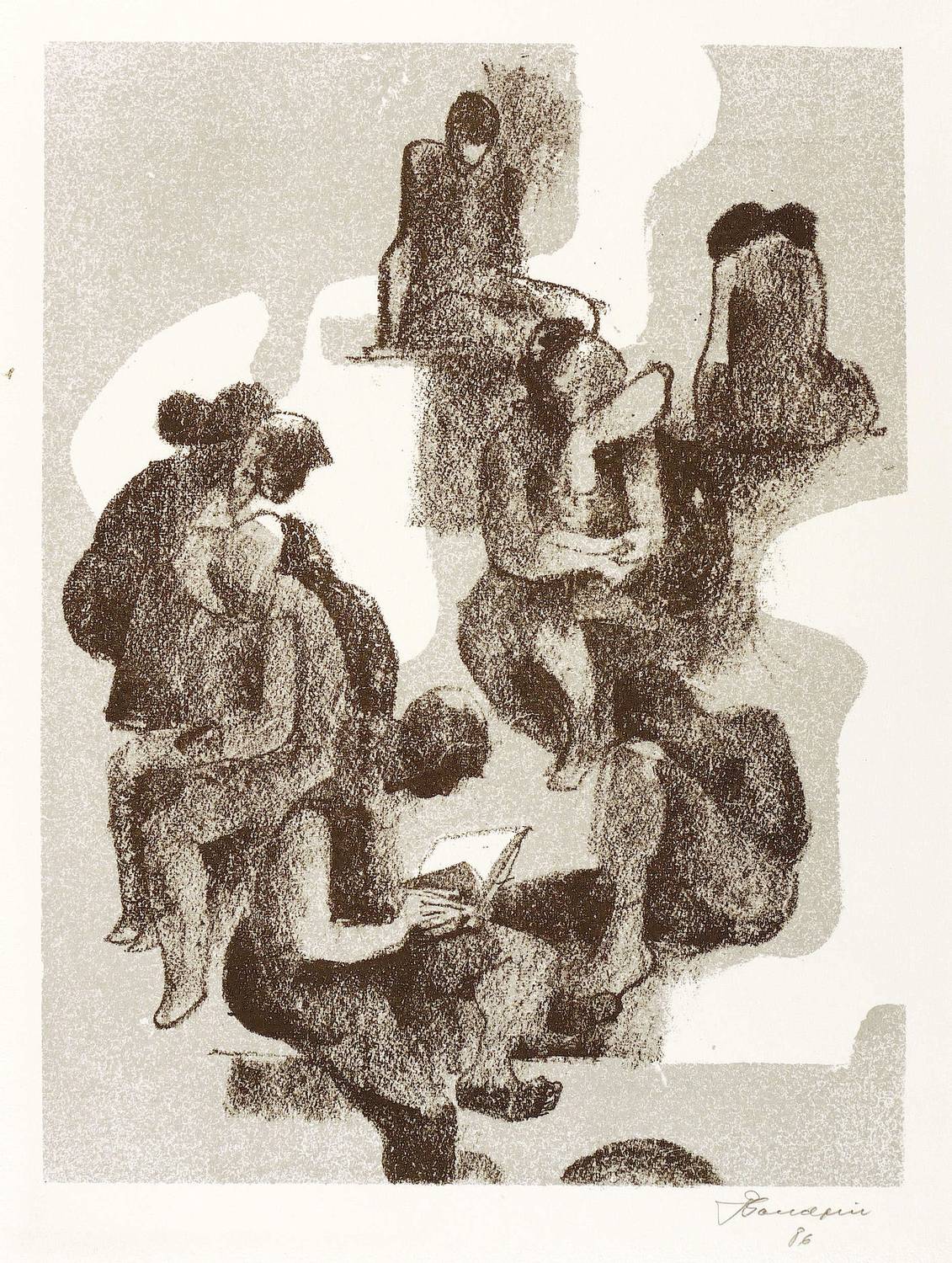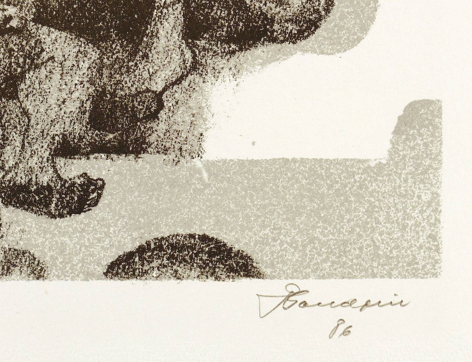 1986. Farblithografie / Kreidelithografie, in Hellgrau & Schwarz, auf hellem Büttenkarton. – Originale Künstlergrafik, von Gerhard Bondzin. – 30,9 x 23,4 cm (Darstellung), 39,5 x 31,5 cm (Blatt).