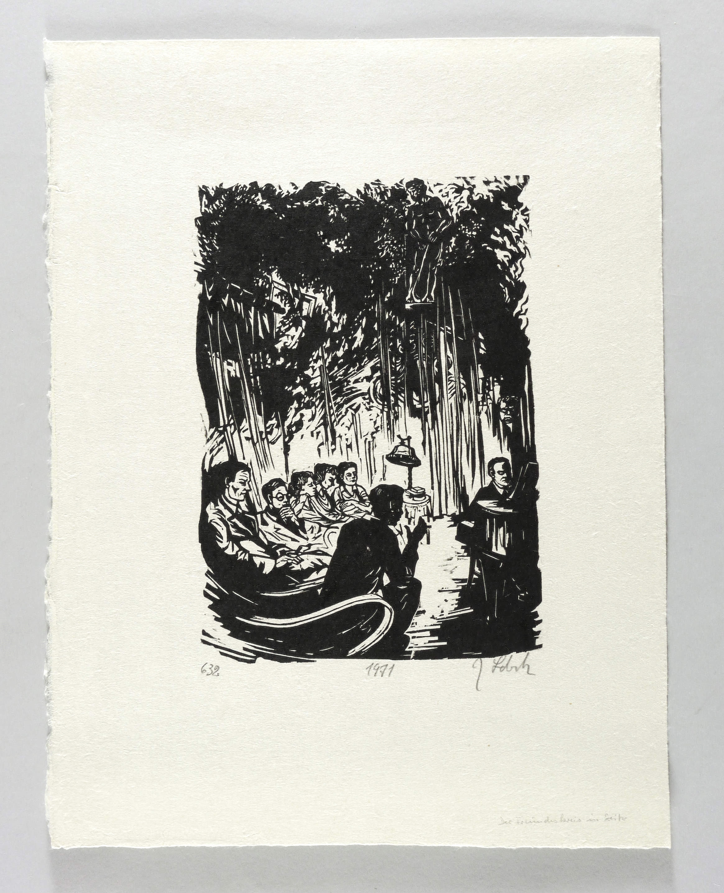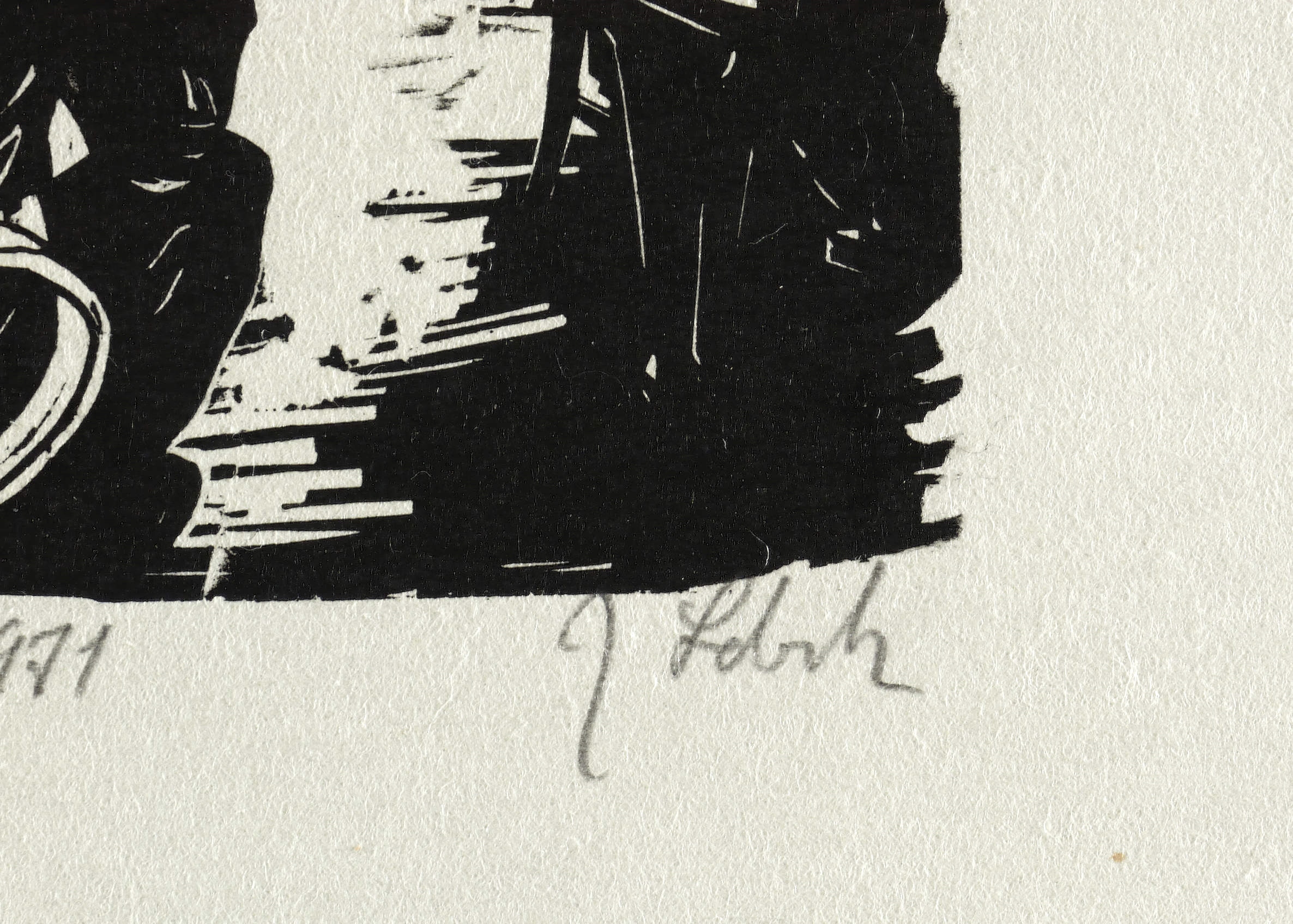 1971. Holzschnitt, in Schwarz, auf rauem weißlichem Japanbütten. – Originale Künstlergrafik, von Johannes Lebek. – 24,0 x 16,6 cm (Darstellung / Druckstock), 40 x 31 cm (Blatt).