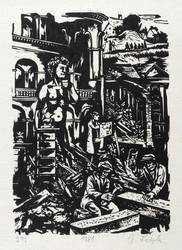 1981. Holzschnitt, in Schwarz, auf rauem weißlichem Japanbütten. – Originale Künstlergrafik, von Johannes Lebek. – 24,1 x 17,0 cm (Darstellung / Druckstock), 40 x 31 cm (Blatt).