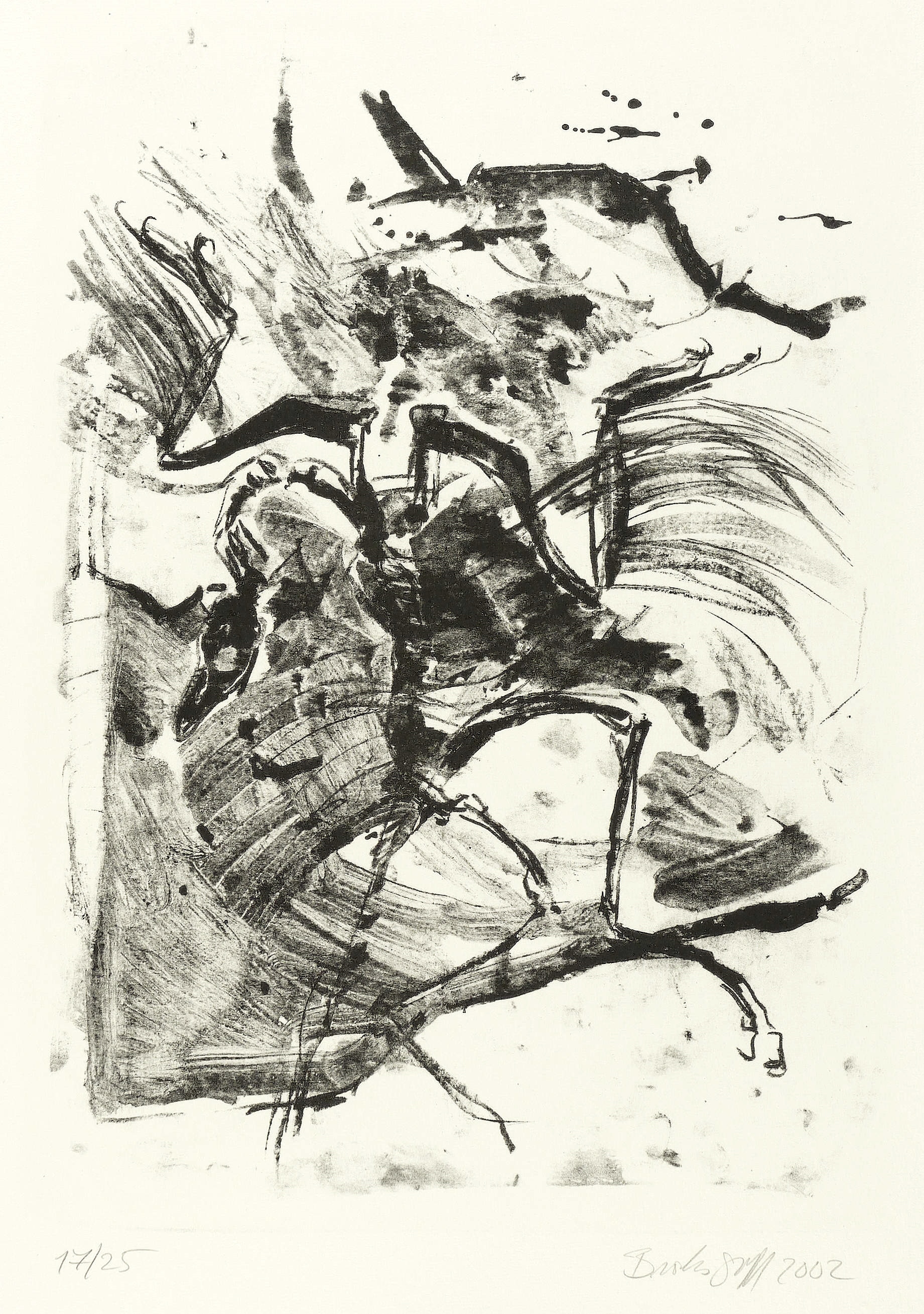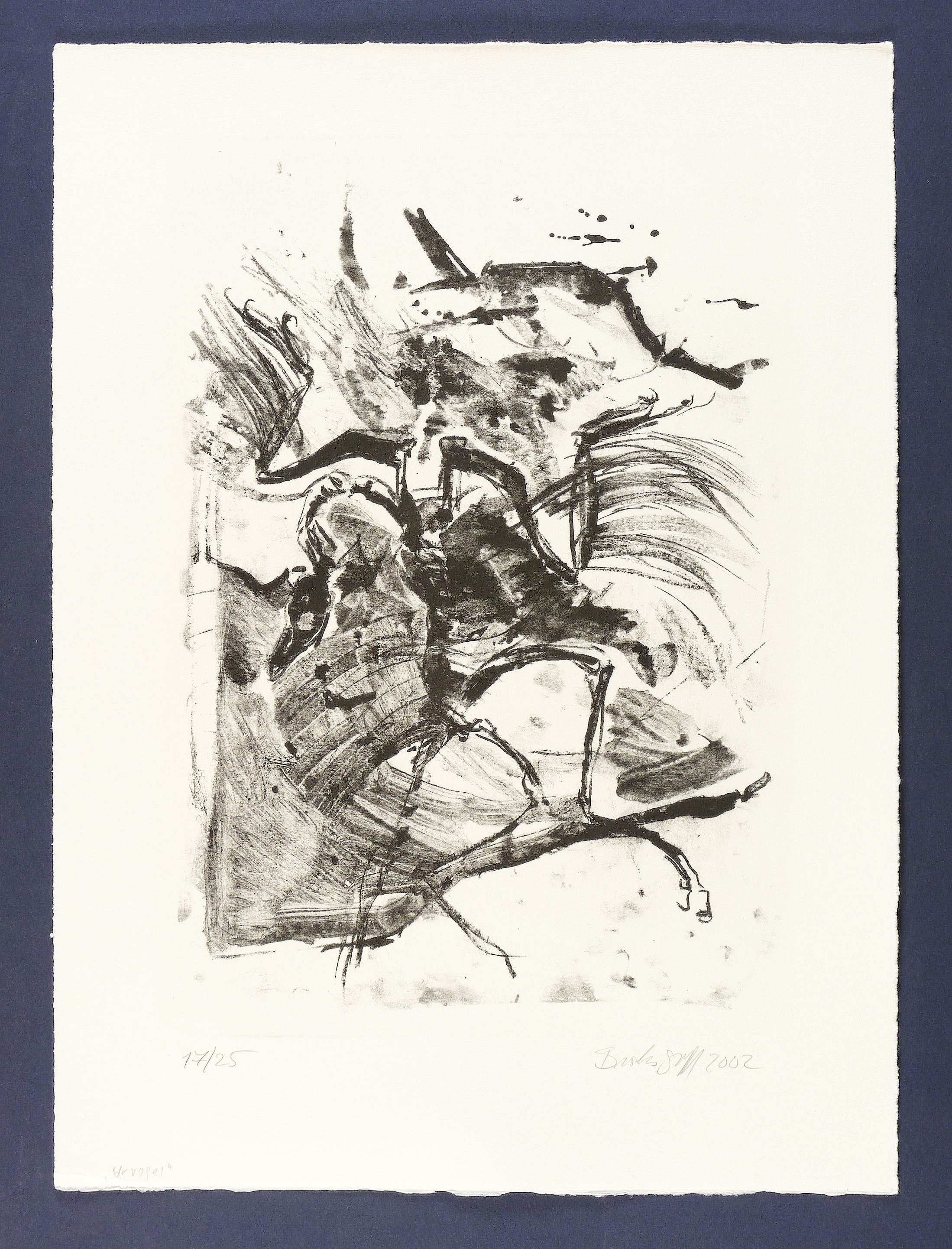 2002. Lithografie / Kreidelithografie, in Schwarz, auf weißem Hahnemühle-Bütten. – Originale Künstlergrafik, von Janet Brooks-Gerloff. – Auflage Exemplar Nr. 17/25. – 39,8 x 28,0 cm (Darstellung / Druckbild), 54 x 39,5 cm (Blatt).