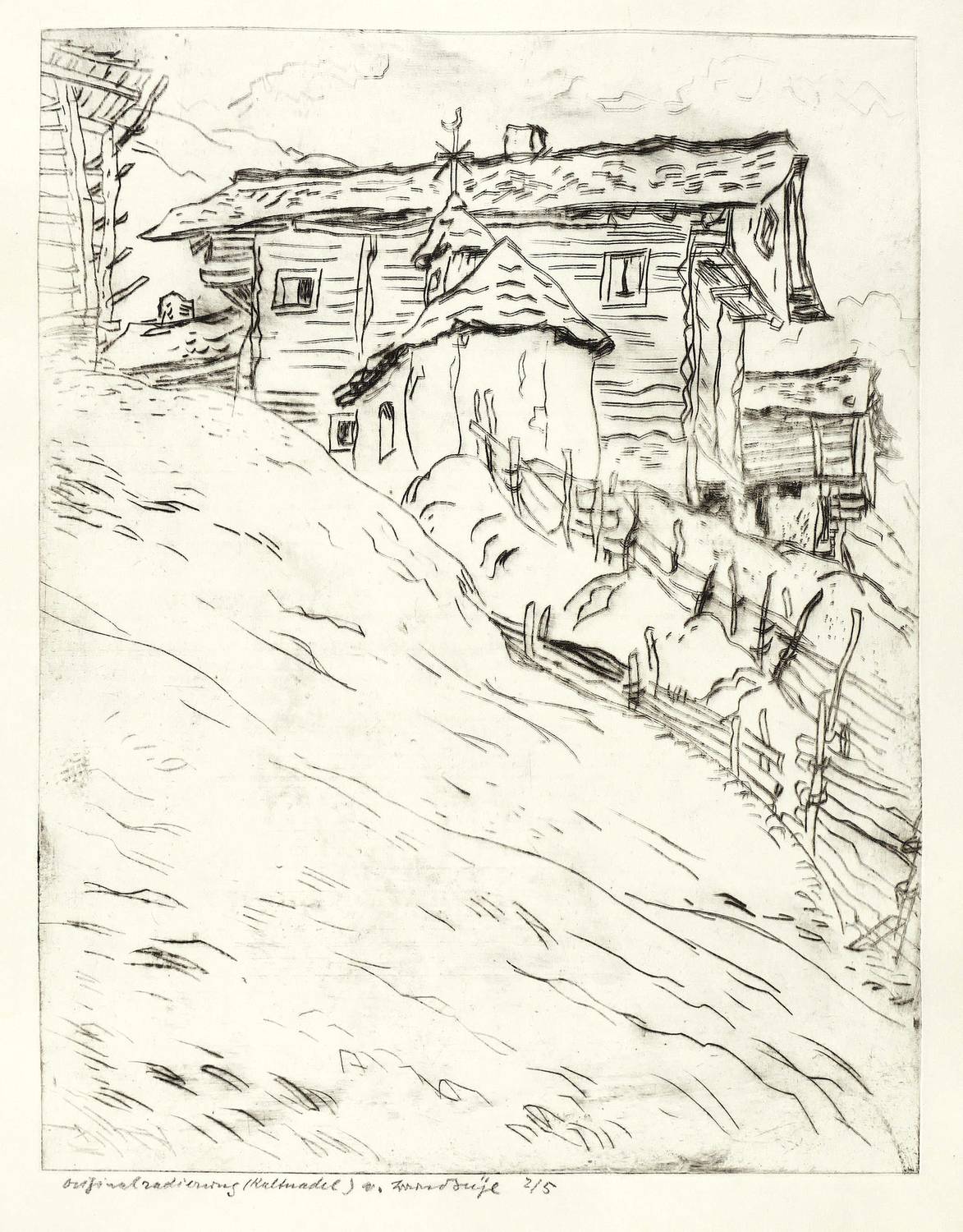 Um 1940. Radierung / Strichätzung, in Schwarz, auf Kupferdruckpapier. – Originale Künstlergrafik, von Bruno Beye. – Auflage Exemplar Nr. 2/5. – 29,2 x 22,5 cm (Darstellung / Platte), 35 x 28 cm (Blatt).