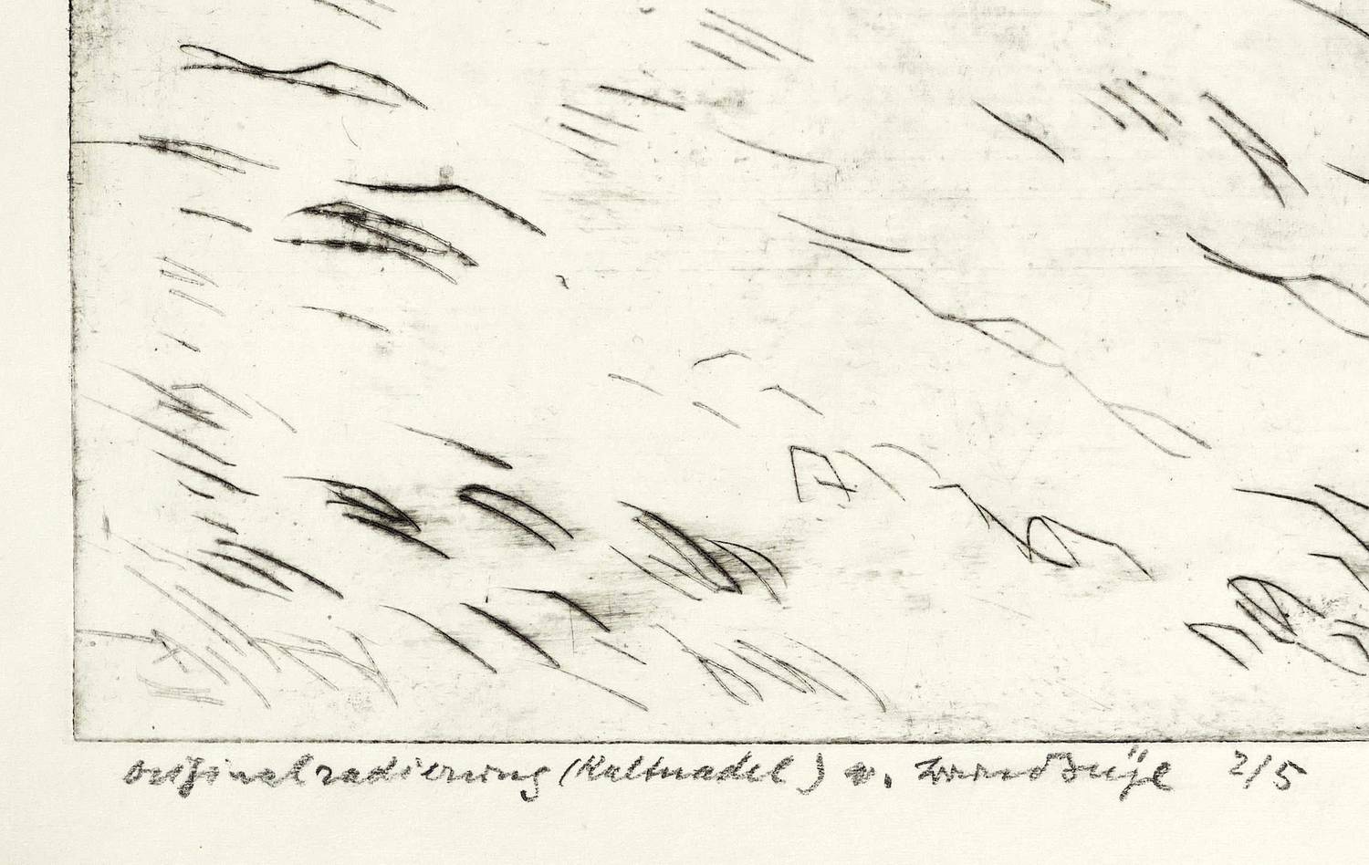 Unterhalb in Bleistift signiert. Dazu Auflagenbezeichnung und Technik. – Etwas unsauberer Abzug. Im Rand gewellt. Insgesamt mäßig guter Zustand.