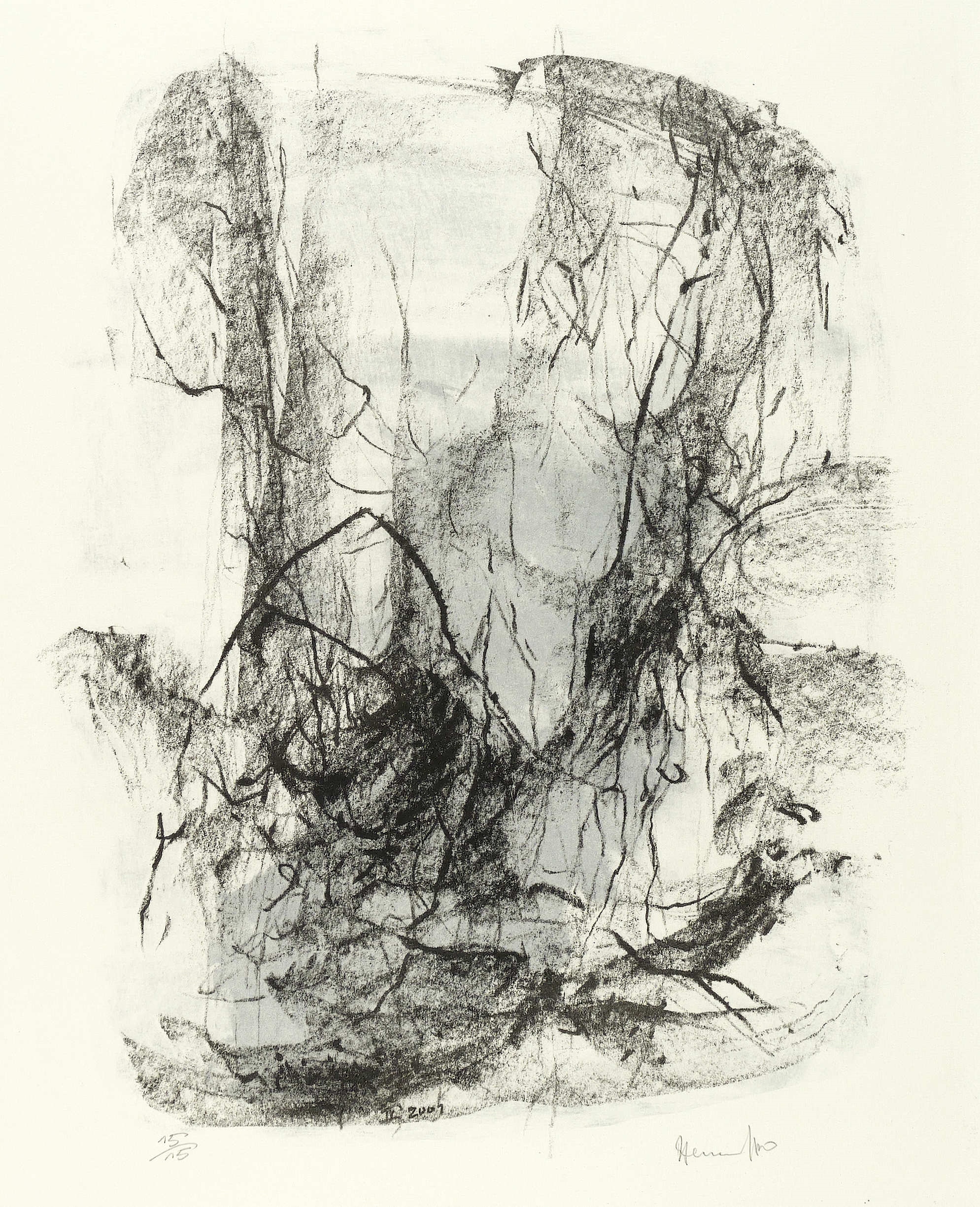 2001. Farblithografie / Kreidelithografie, in 2 Farben, auf schwerem hellem Büttenkarton. – Von Wolf Heinecke. – Auflage Exemplar Nr. 15/15. – 39,7 x 31,2 cm (Darstellung / Druckbild), 53,5 x 39,5 cm (Blatt).