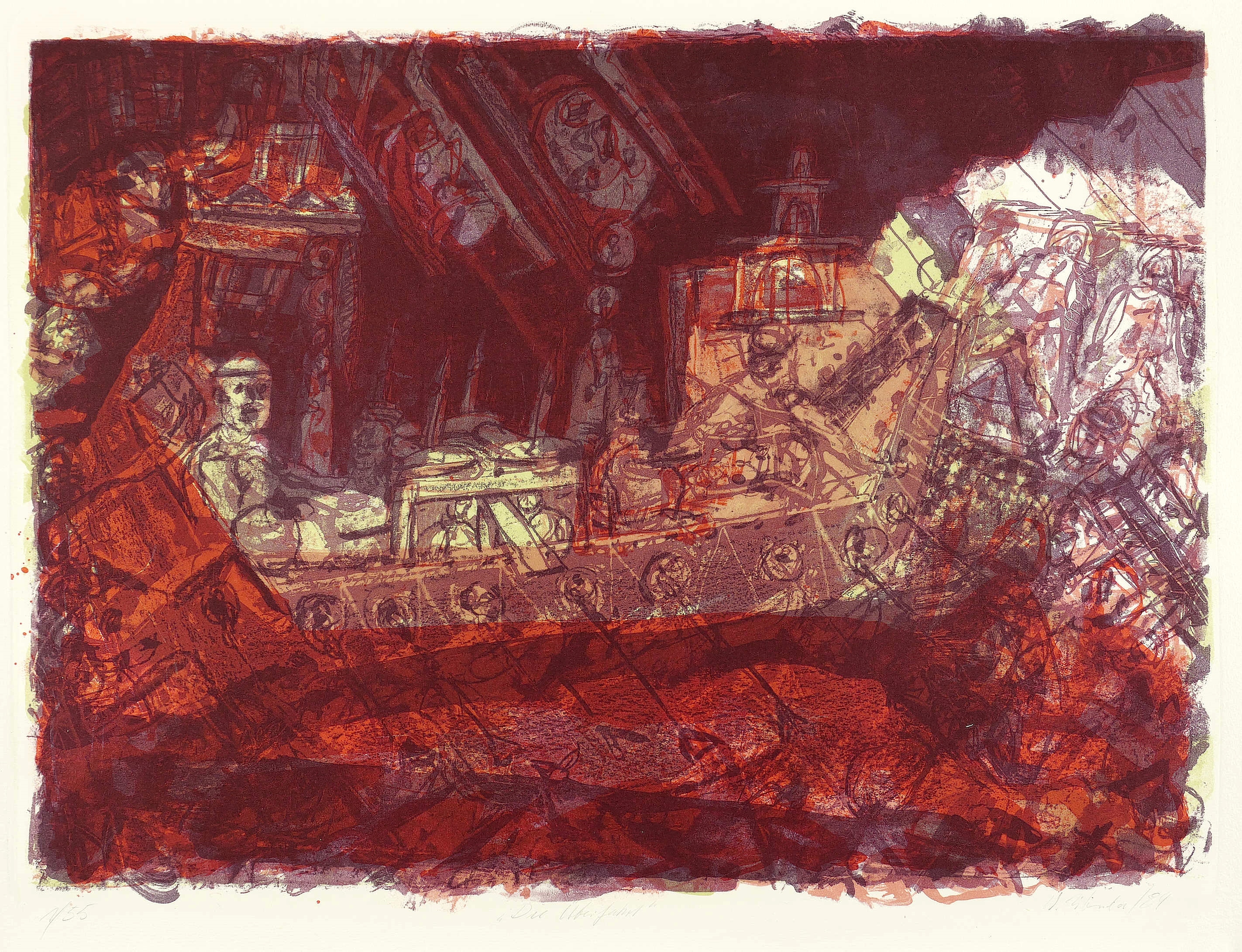 1984. Farblithografie / Pinsellithografie, in 5 Farben, auf Hahnemühle-Bütten. – Von Walter Libuda. – Auflage Exemplar Nr. 1/55. – 35,5 x 48,5 cm (Darstellung / Druckbild), 40 x 54 cm (Blatt).
