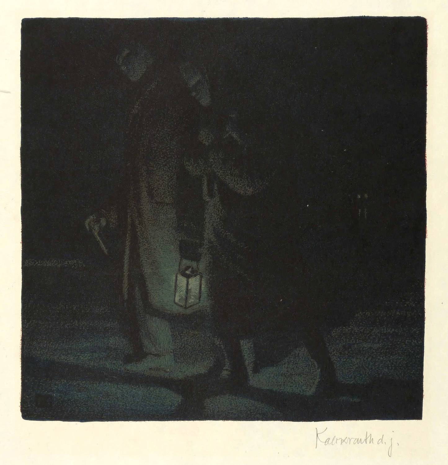 Aus: Pan (Berlin: Fontane 1897/1898), Bd. 3. – Rechts unten in Bleistift signiert: ″Kalckreuth d.J.″ Am unteren Blattrand Titel. In der rechten unteren Blattecke Trockenstempel des Pan mit handschriftlicher Nr. – Originalrandiges Exemplar. Im Rand leichte Knickspuren. Insgesamt guter Zustand