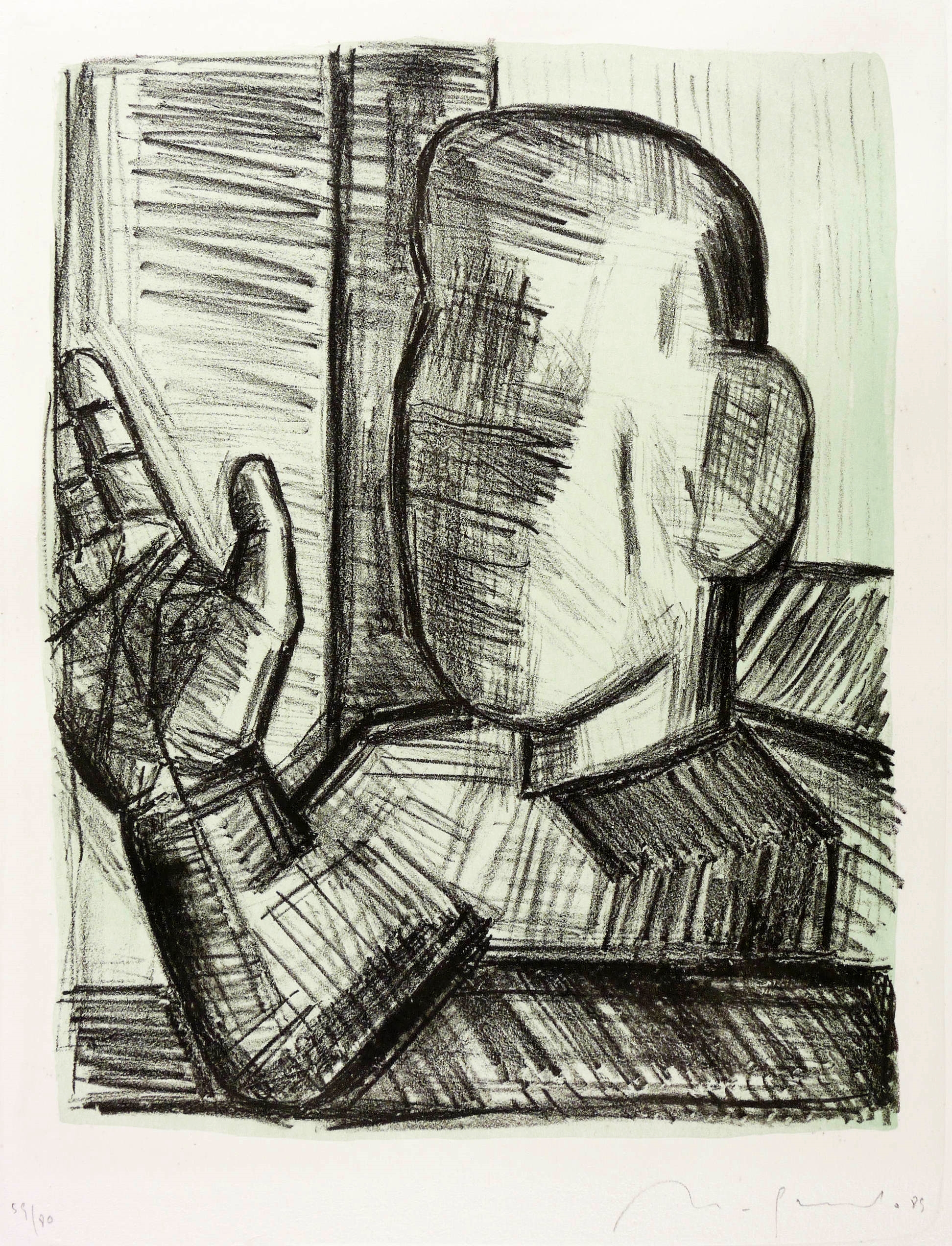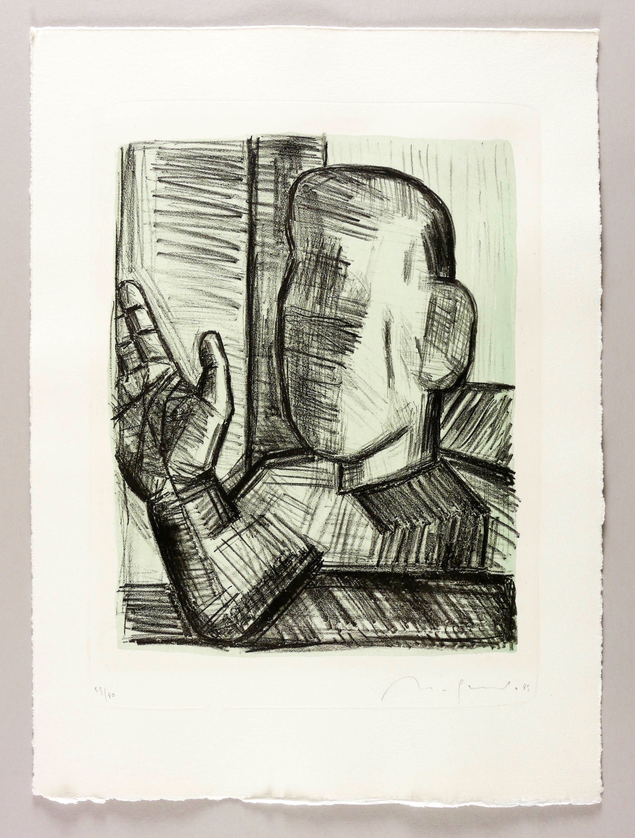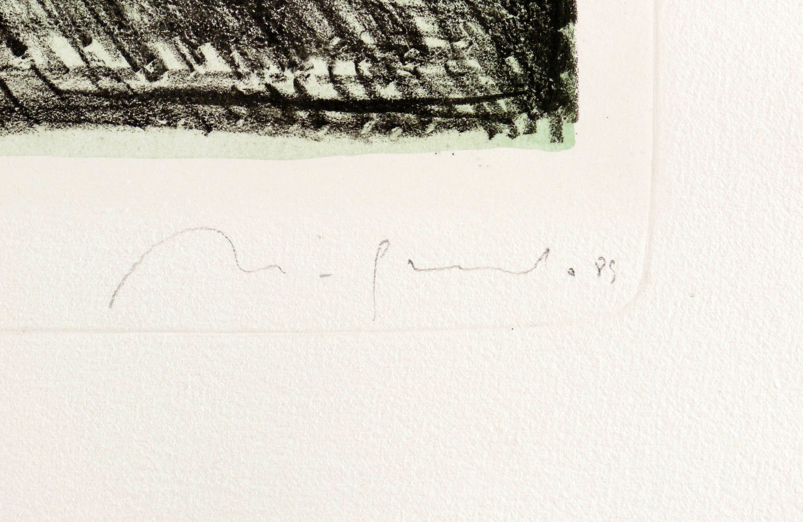 1989. Tonlithografie / Kreidelithografie, in Schwarz, über blau-grüner Tonplatte, auf Hahnemühle-Bütten. – Originale Künstlergrafik, von Nuria Quevedo. – Auflage Exemplar Nr. 59/80. – 36,4 x 28,3 cm (Darstellung / Druckbild), 54 x 40 cm (Blatt).
