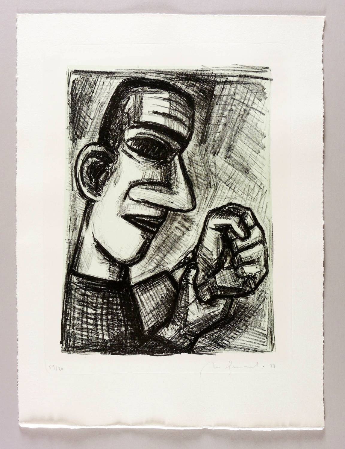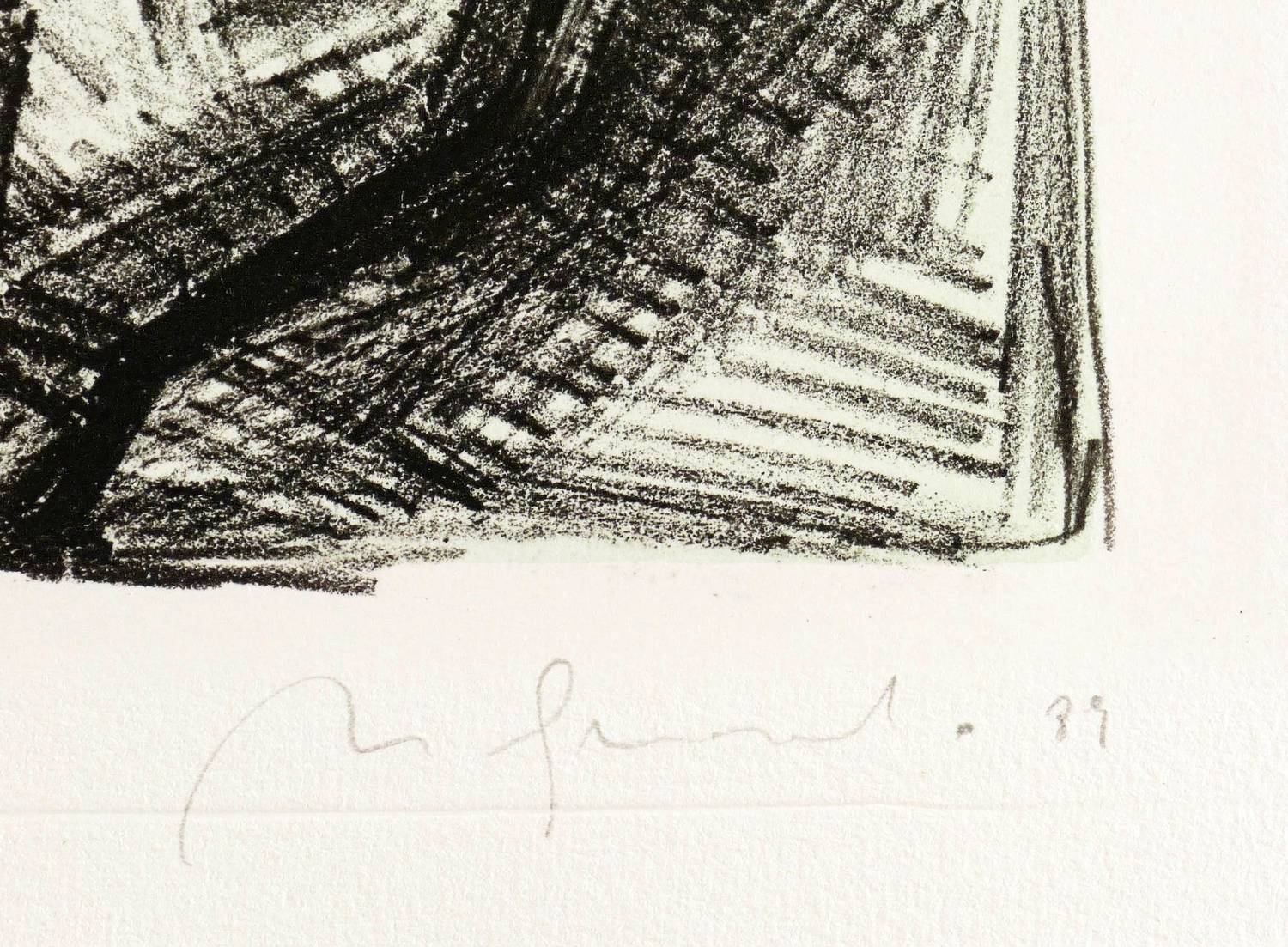 1989. Tonlithografie / Kreidelithografie, in Schwarz, über blau-grüner Tonplatte, auf Hahnemühle-Bütten. – Originale Künstlergrafik, von Nuria Quevedo. – Auflage Exemplar Nr. 59/80. – 37,8 x 27,4 cm (Darstellung / Druckbild), 54 x 40 cm (Blatt).