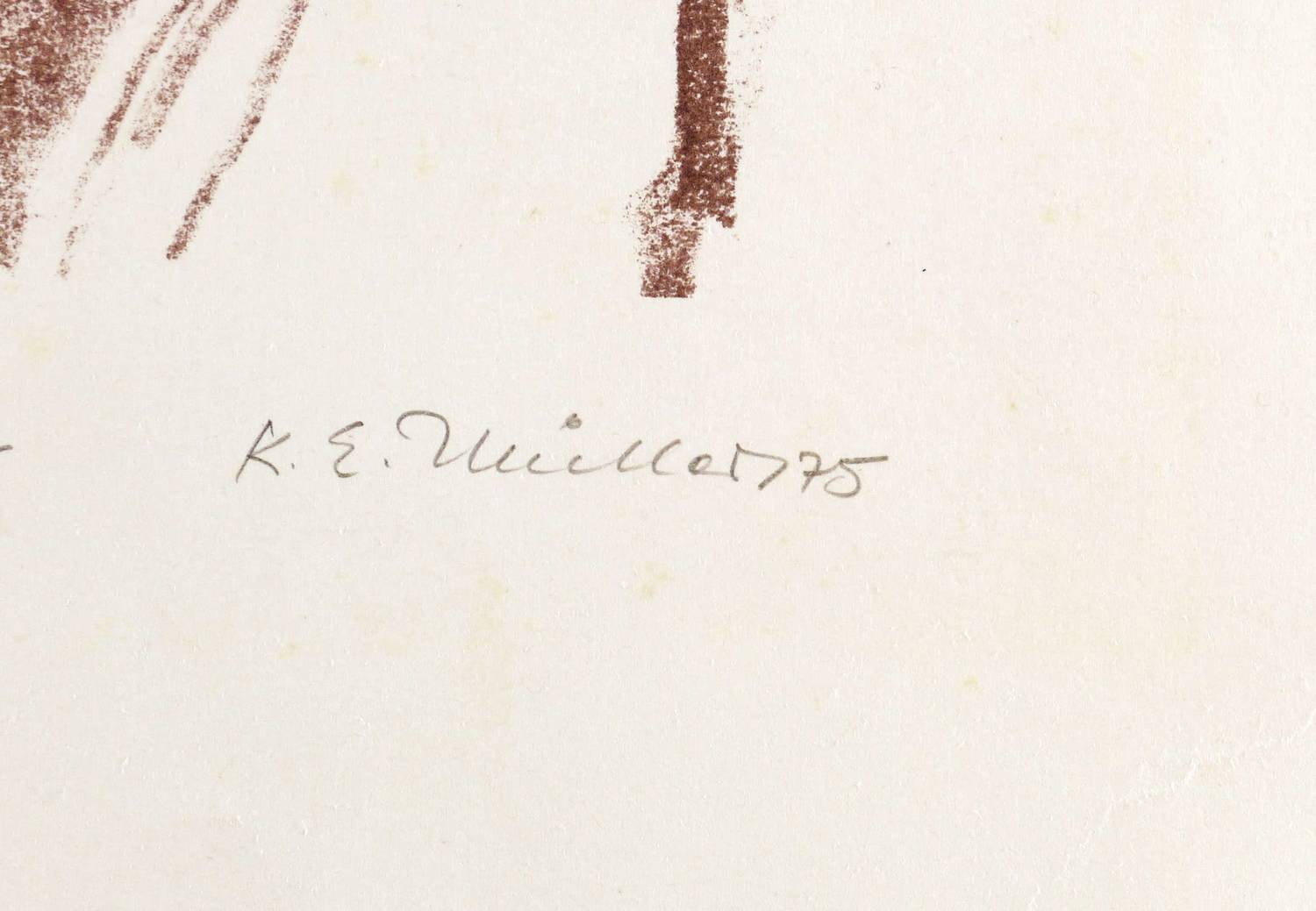 1975. Lithografie / Kreidelithografie, in Dunkelbraun, auf glattem hellem Velin. – Originale Künstlergrafik, von Karl Erich Müller. – Auflage Exemplar Nr. 15/15. – 33 x 29 cm (Blatt), 20,0 x 15,1 cm (Darstellung / Druckbild).