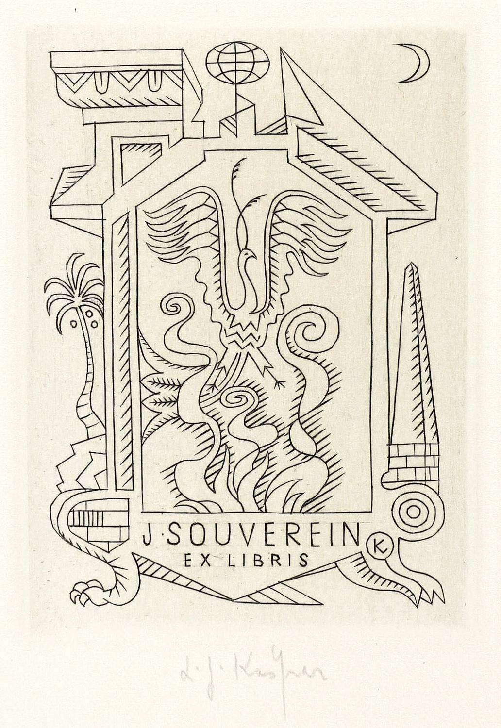 Ladislav Josef Kaspar (1915 Travnik in Bosnien-Herzegowina - 1997 Prag). Bosnisch-tschechischer Grafiker und Exlibris-Künstler.