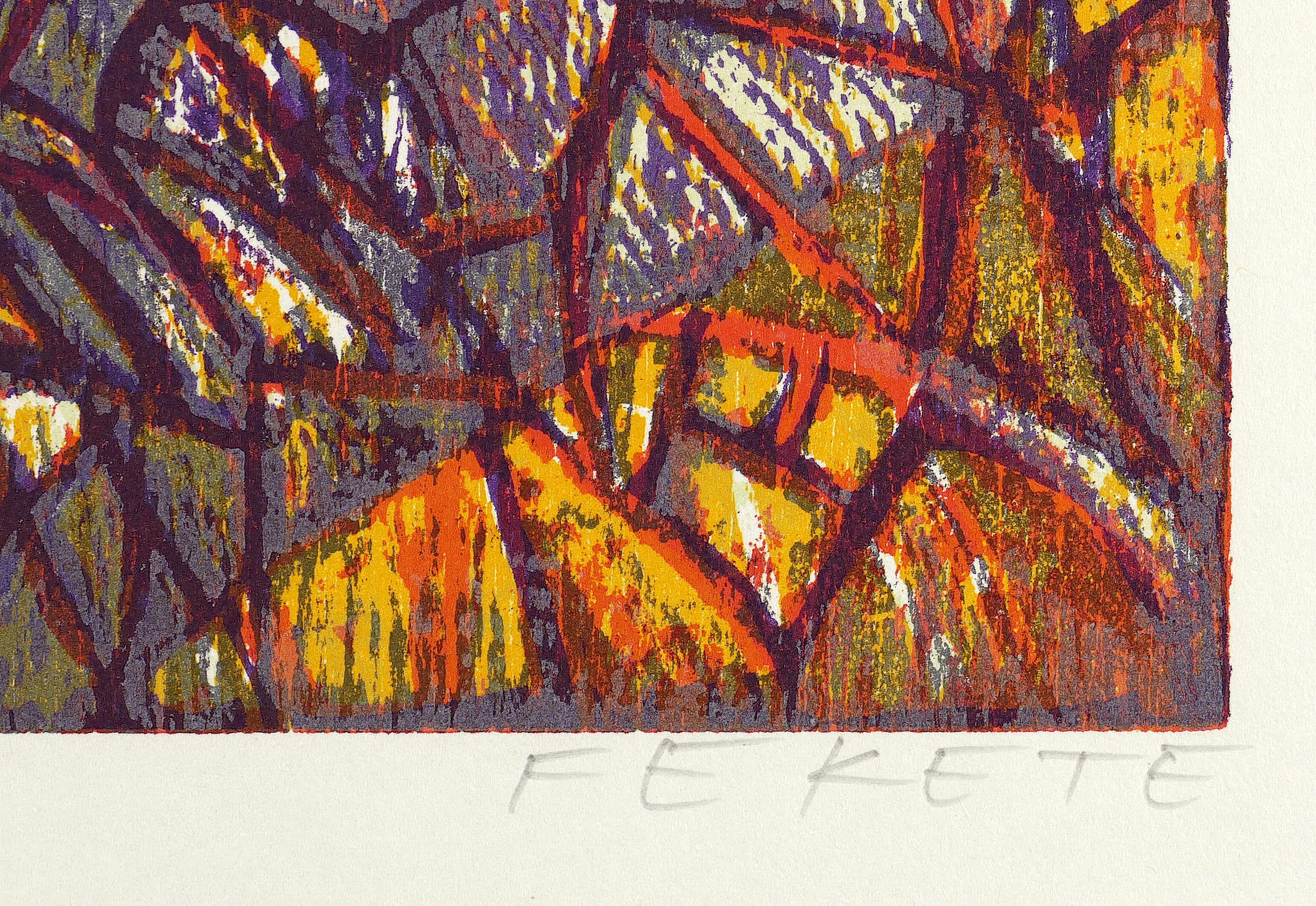 Esteban Fekete (1924 Cinkota / Budapest - 2009 Dieburg). Deutsch-argentinischer Maler, Zeichner und Grafiker. Arbeitete in verschiedenen Techniken wie Öl und Tempera, aber auch in Mischtechniken auf Papier, Holz oder Hartfaser. Anfang der 1970er Jahre entstanden Email-Bilder, Zeichnungen und Linolschnitt. Seine ureigene Technik ist allerdings der Holzschnitt, insbesondere der Farbholzschnitt, mit dem er sich einen Namen machte. So entwickelte er eine eigene Schnitt- und Bearbeitungstechnik für die Holzplatten. Für die Farbgebung verwendete er eigens dafür gesuchte Ölfarben.
