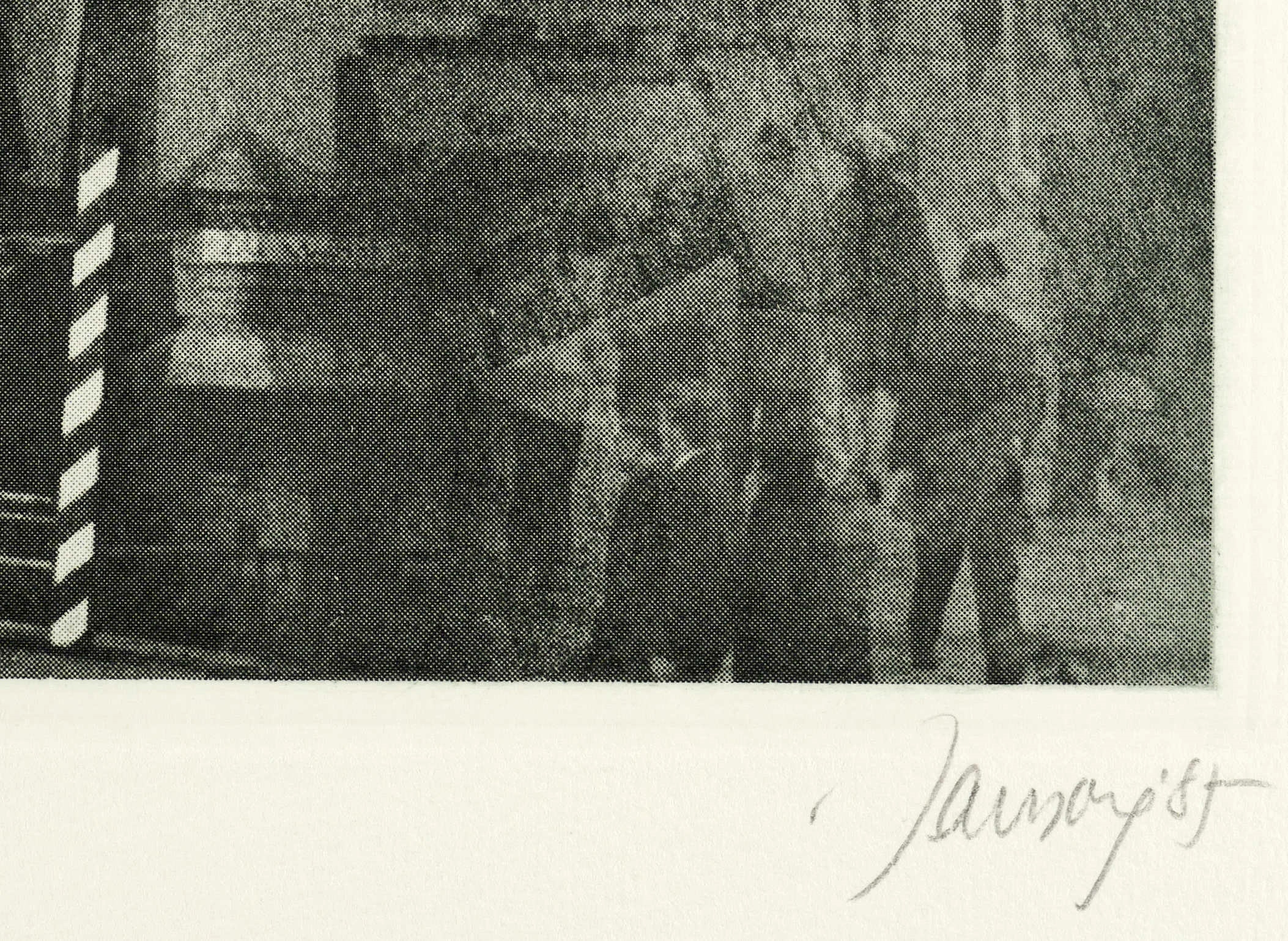 1985. Radierung / Fotomontage, in Schwarz, auf hellgelbem Weißenborn-Bütten. – Originale Künstlergrafik, von Joachim Jansong. – Auflage Exemplar Nr. XVII/XXV. – 21,6 x 29,3 cm (Darstellung), 22,8 x 30,6 cm (Platte), 36 x 36 cm (Blatt).
