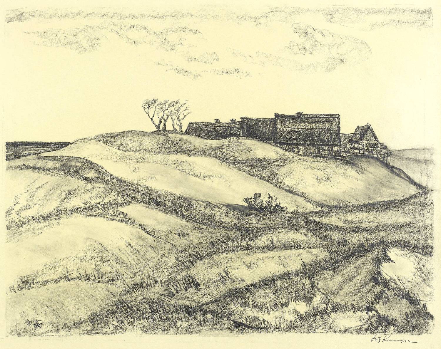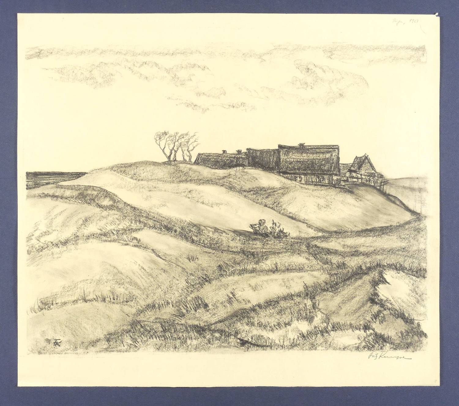 Rechts unten in Bleistift signiert: ″Fritz Kempe″. In der Darstellung links unten Monogramm. Rechts oben von anderer Hand bezeichnet: ″Rügen, 1929″. Verso Sammlernotitz. – Im Rand minimale Lagerspuren. Insgesamt guter Zustand.