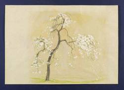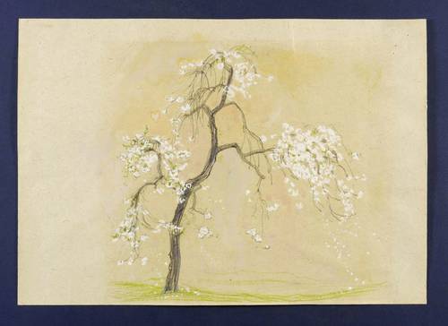 Verso in Bleistift bezeichnet. – Studie und Vorzeichnung zum Farbholzschnitt ″Blühender Kirschbaum″ von 1963. – Verso leichte ältere Montagespuren. Sehr guter Zustand.