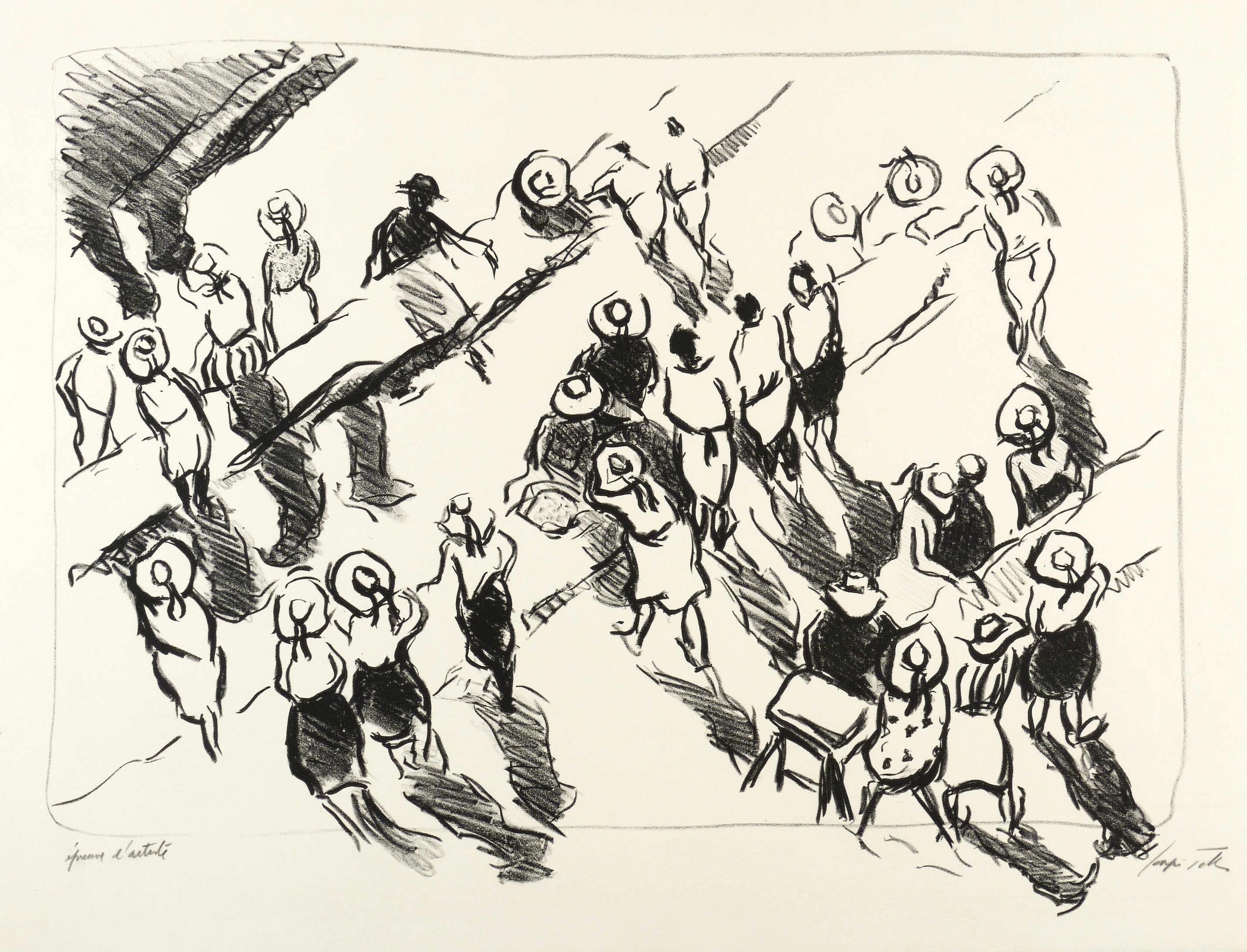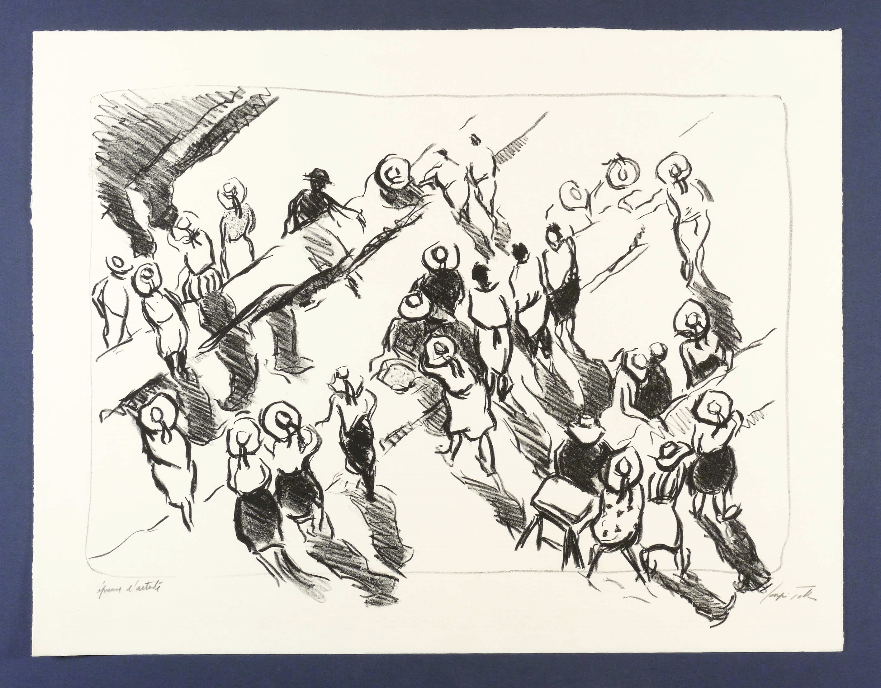 Rechts unten in Bleistift signiert. Links eigenhändige Auflagenbezeichnung. – Zuschauer mit Sommerhüten. - Diese Lithografie wurde in einer Auflage von 28 Exemplaren im Atelier Michel Casse in Paris gedruckt. – Ohne Mangel. Sehr guter Zustand.