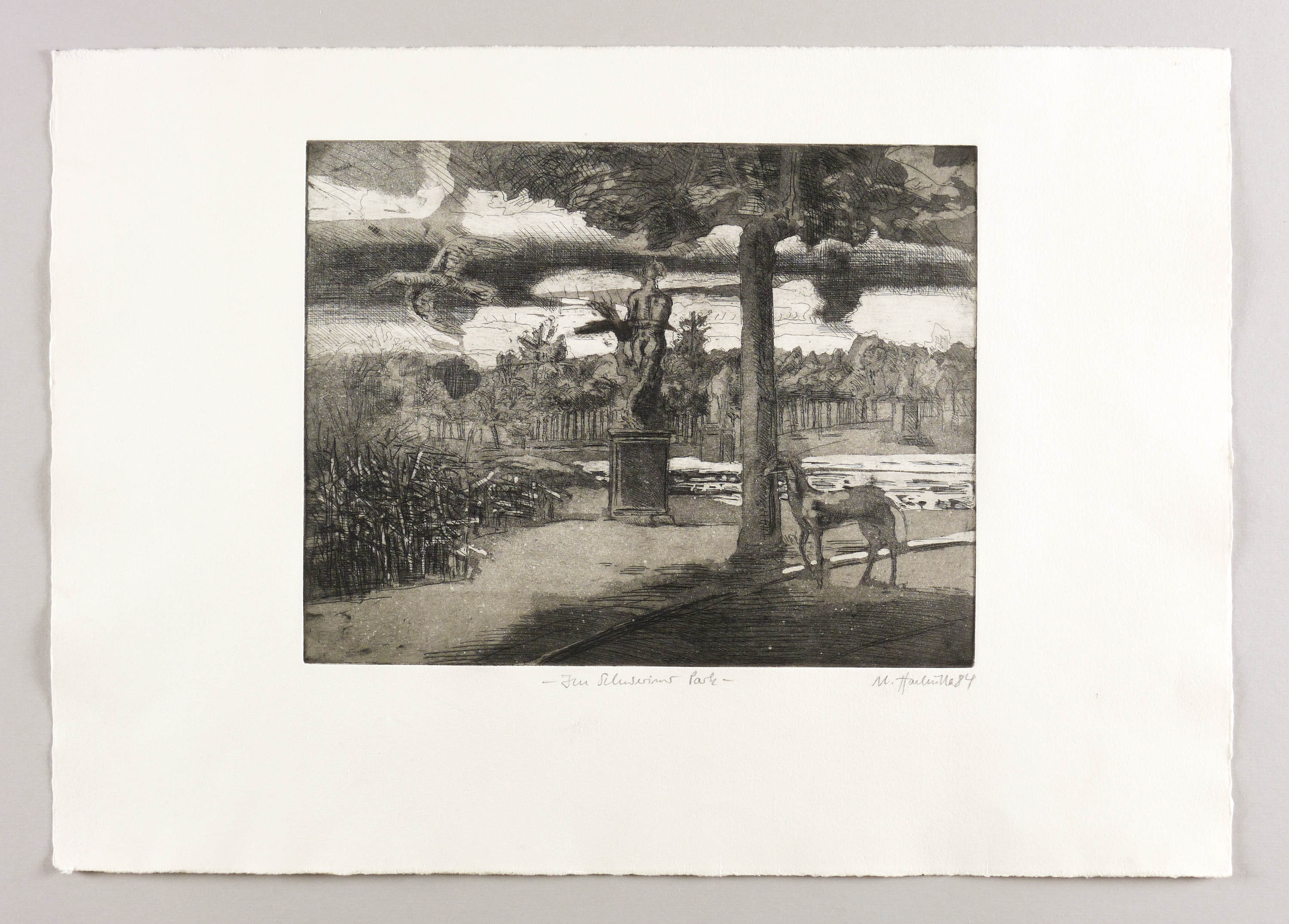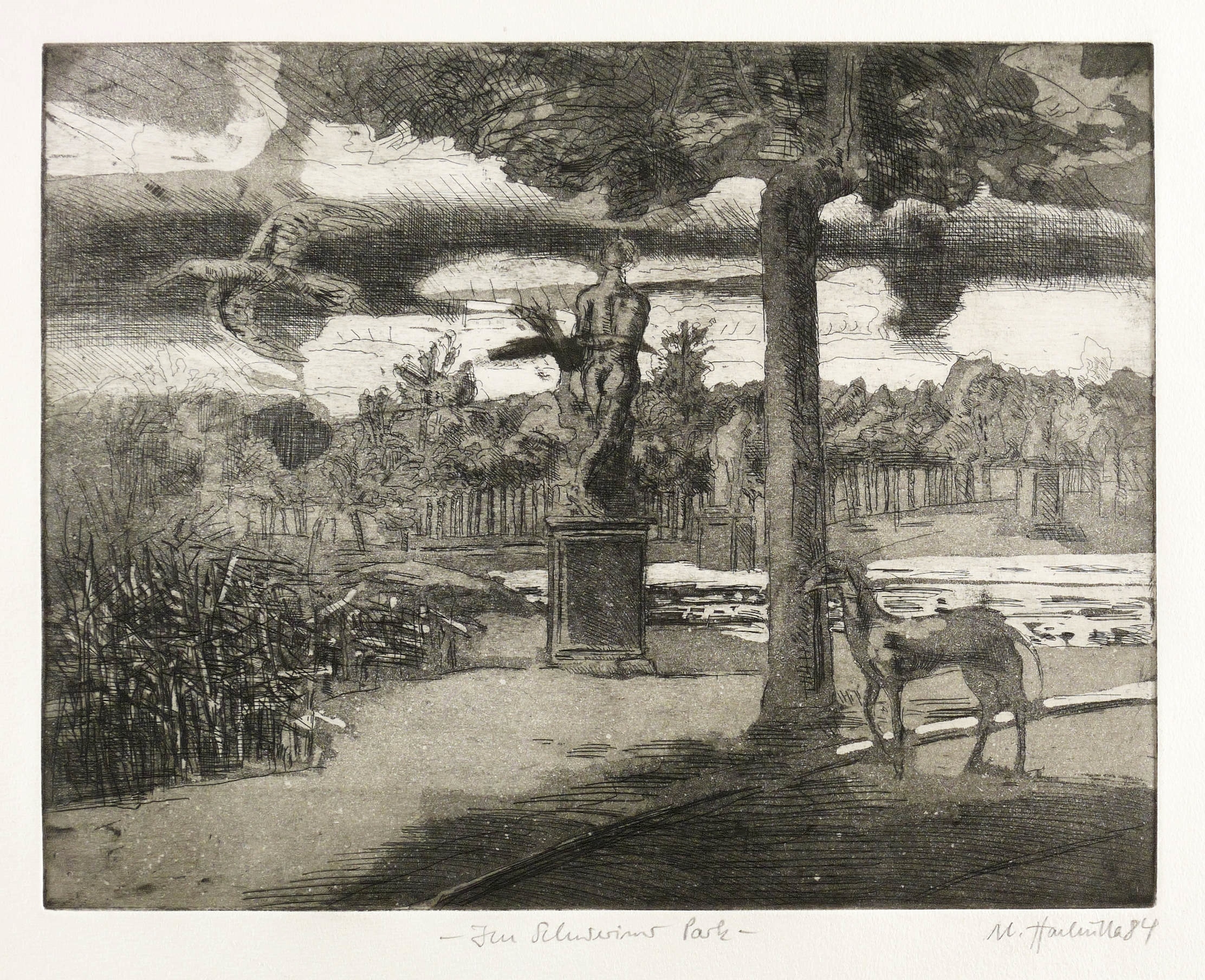Rechts unten in Bleistift signiert und datiert: ″U. Hachulla 84″. Mittig Titel: ″Im Schweriner Park″. – Schönes Exemplar. Sehr guter Zustand.
