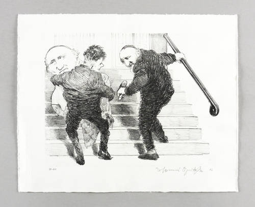 2006. Lithografie / Kreidelithografie, in Schwarz, auf hellchamois Hahnemühle. – Originale Künstlergrafik, von Johannes Grützke. – Auflage Exemplar Nr. 17/60. – 23,6 x 31,1 cm (Darstellung / Druckbild), 32 x 40 cm (Blatt).
