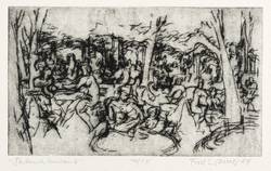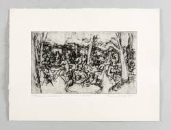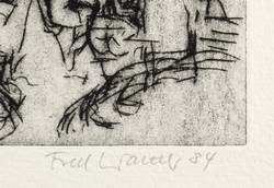 1984. Radierung / Strichätzung, in Schwarz, auf hellem Büttenkarton. – Originale Künstlergrafik, von Fred Walther. – Auflage Exemplar Nr. 10/15. – 10,4 x 17,6 cm (Darstellung / Platte), 19 x 25 cm (Blatt).