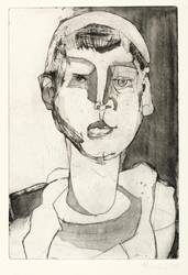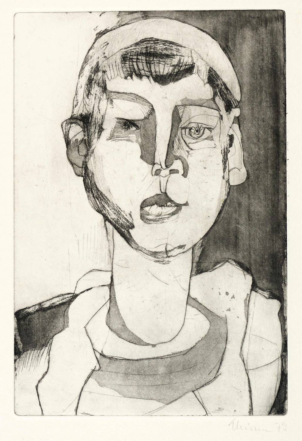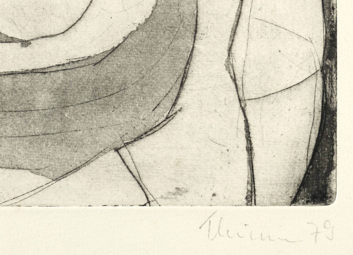 1979. Radierung / Strichätzung & Aquatinta, in Schwarz, auf gelblichem Maschinenbütten. – Originale Künstlergrafik, von Andreas Thieme. – 34,1 x 23,0 cm (Darstellung / Platte), 46 x 33,5 cm (Blatt).