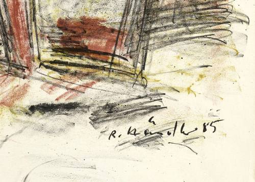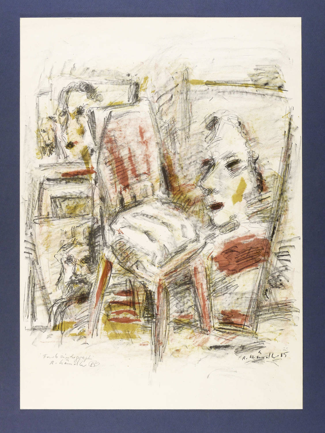 1985. Farbzinkografie / Pinselzinkografie, in 4 Farben, auf hellem Karton. – Originale Künstlergrafik, von Rolf Händler. – 50,5 x 40,2 cm (Darstellung / Druckbild), 56,5 x 40,5 cm (Blatt).